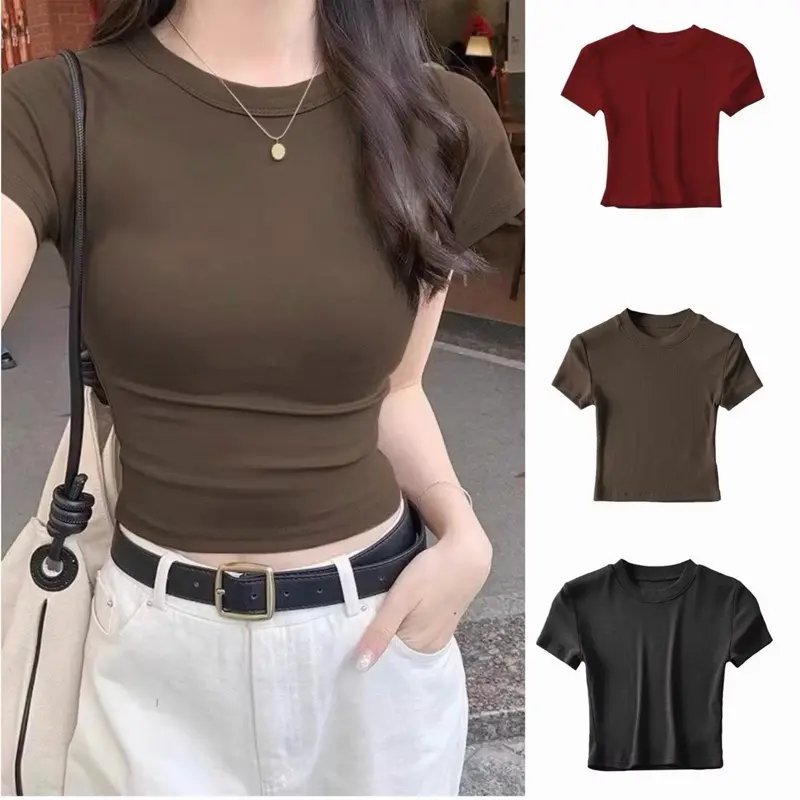 Atasan Crop Top Tshirt Polos Kaos Wanita Slim Fit Melar Bahan Cotton Stretch Size S M L XL Cocok Untuk Gaya Korea Basic