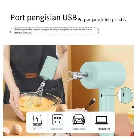 Mixer elektrik 3 kecepatan yang dapat diatur, mixer tangan tanpa kabel, mixer adonan kue elektrikkeluarga