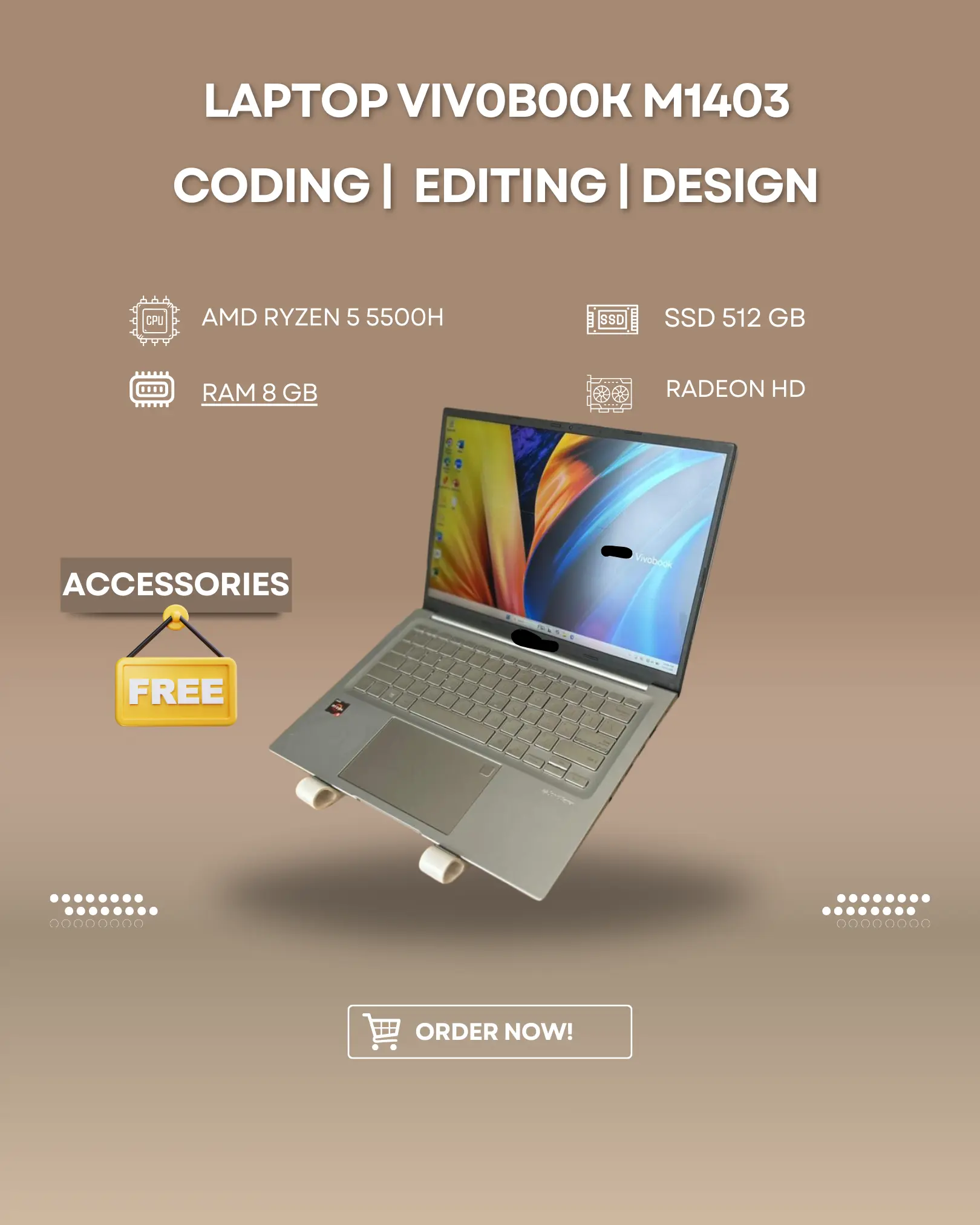 Laptop VIVOBOOK M1403 AMD Ryzen 5 H Series dengan RAM 8GB dan SSD 512GB adalah pilihan yang tepat untuk kebutuhan Anda. Tipe laptop ini memberikan performa yang handal dan penyimpanan yang cukup.
