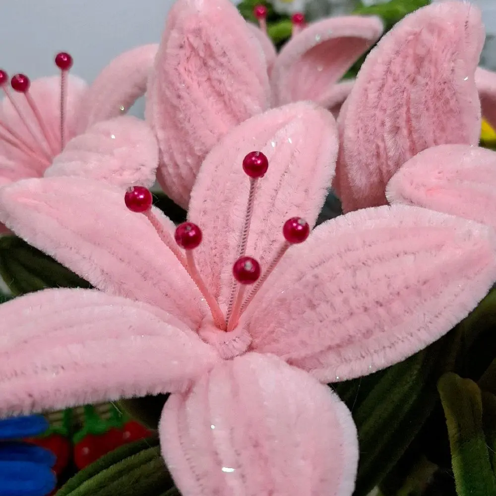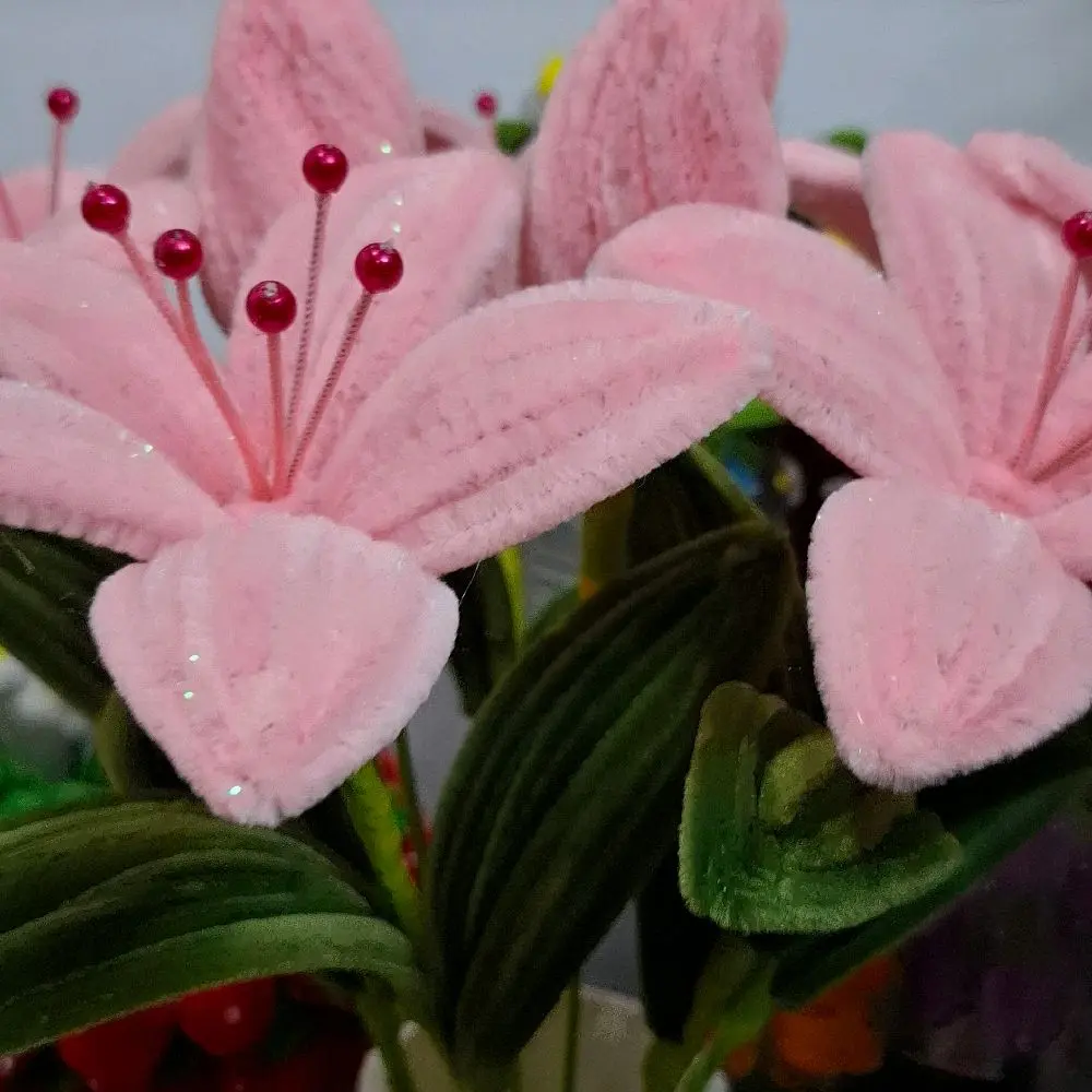 ·Bunga Lily ini hadir dengan warna Pink Salmon yang menawan. Dilengkapi dengan gliter yang menambah keindahan. 🌸