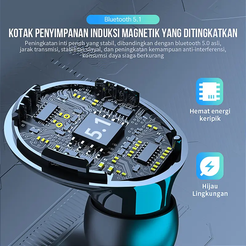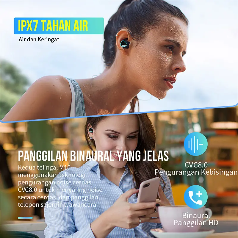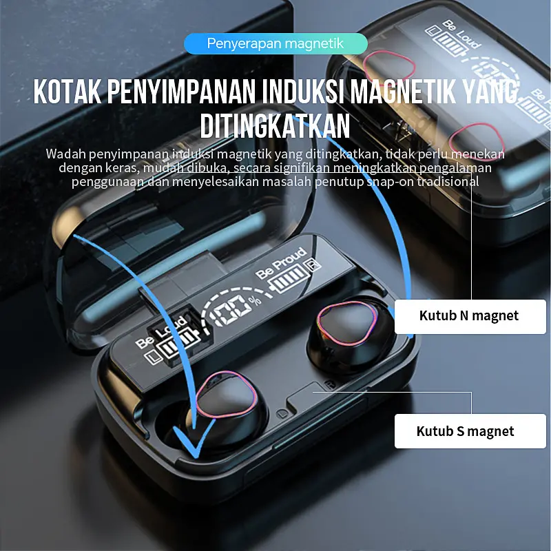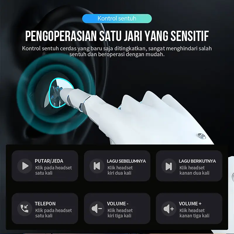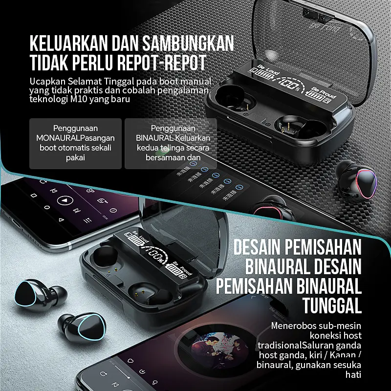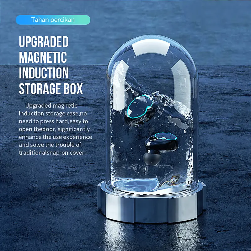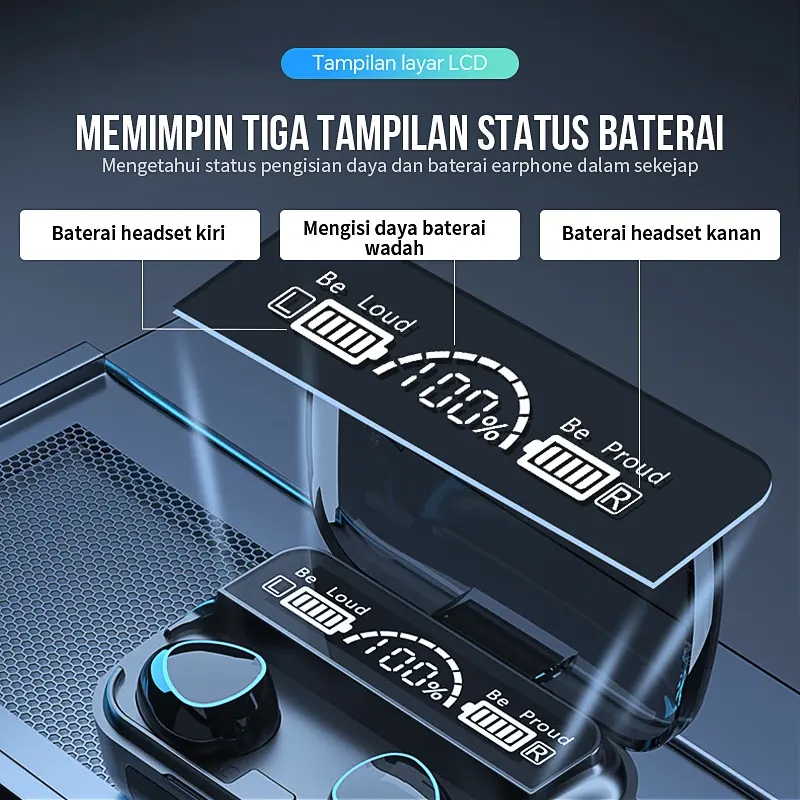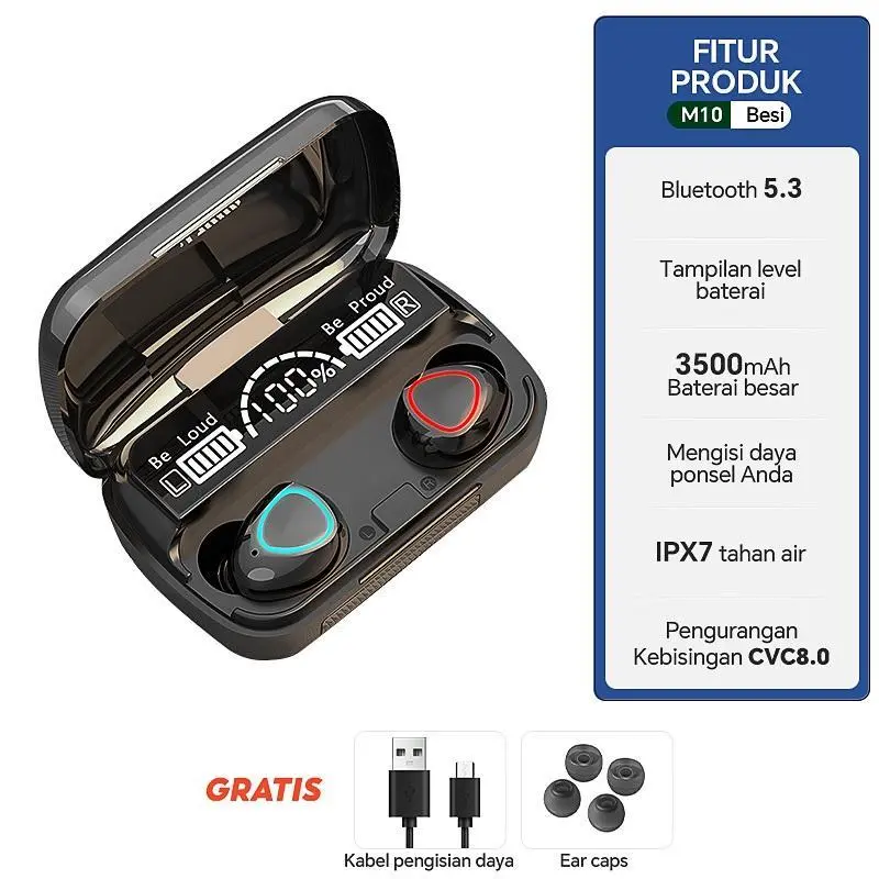 1 x TWS Bluetooth headset (telinga kiri dan kanan)