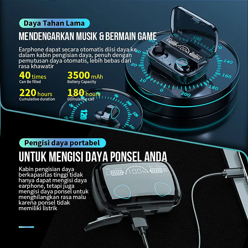 - Waktu pengisian daya (untuk Earphone dan CASE Pengisian): 2 jam