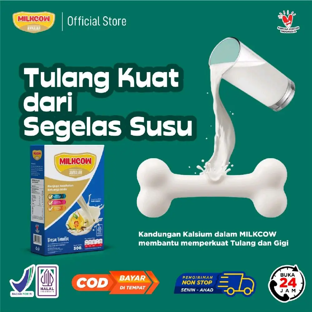 ·Penggemuk Badan: Susu Sapi MILKCOW 500gr adalah pelengkap gizi yang dirancang untuk membantu penggemuk badan. 🐄
