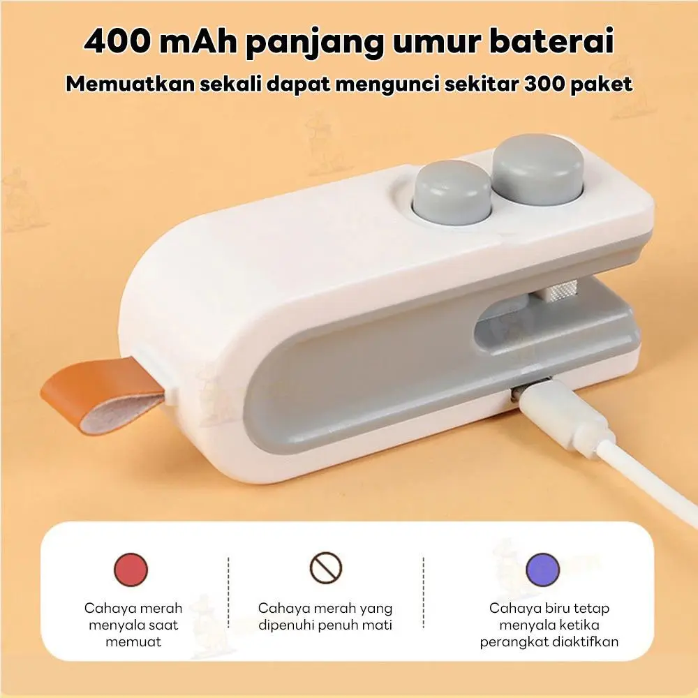 * Sekali pengisian daya dapat menyegel hingga *sekitar 300 kali*, memenuhi kebutuhan penggunaan jangka panjang tanpa perlu sering diisi ulang.