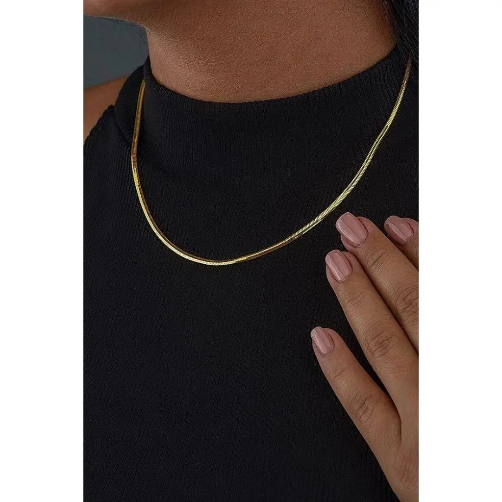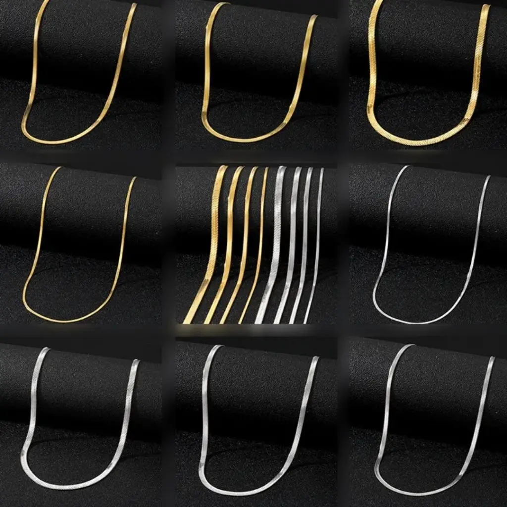 Kalung Titanium Pria Dan Wanita Belut Gepeng Tipis Warna Emas Dan Silver Kekinian