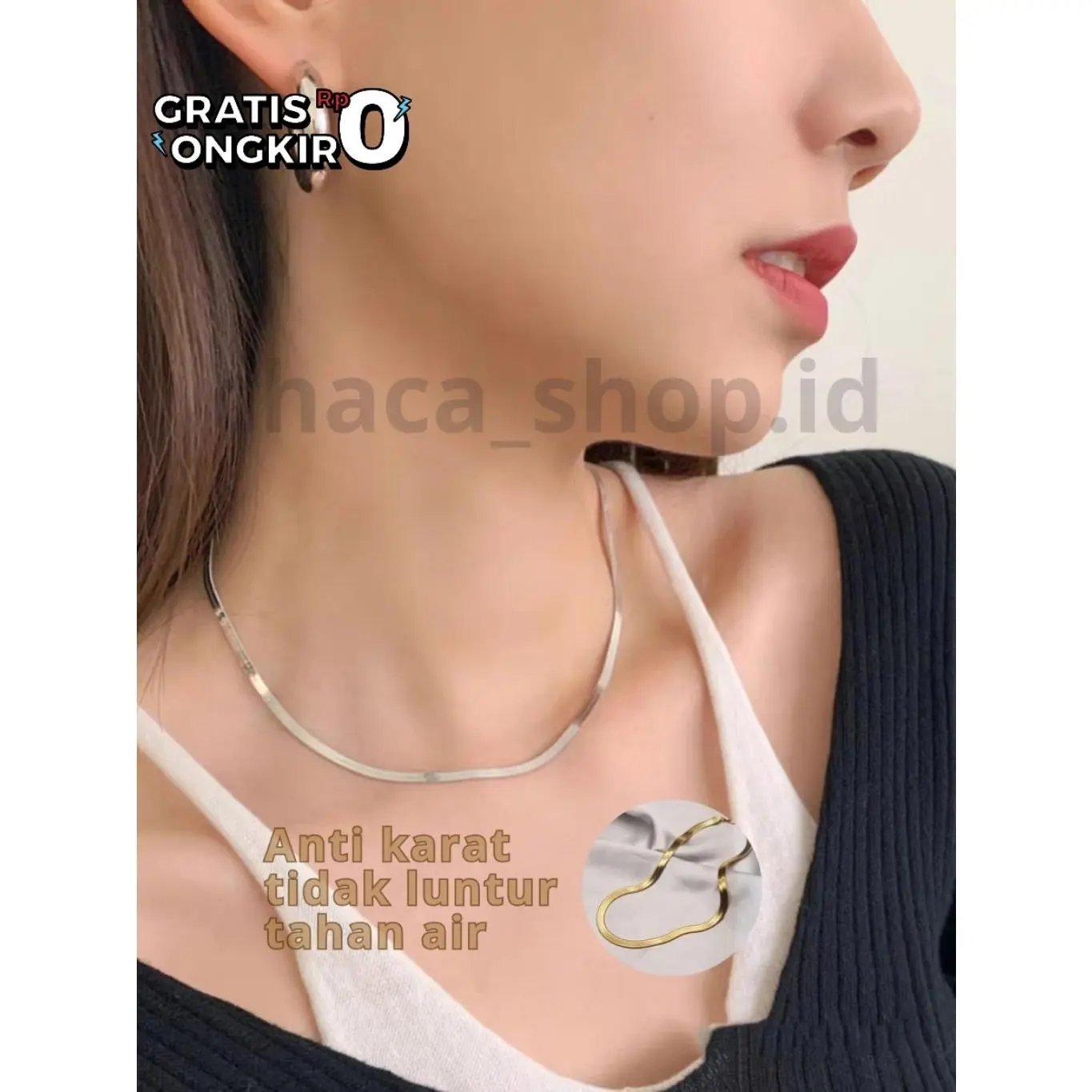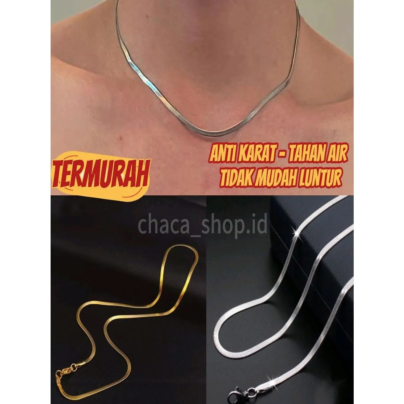 5. Kalung Titanium Pria Dan Wanita Belut Gepeng Tipis Warna Emas Dan Silver Kekinian