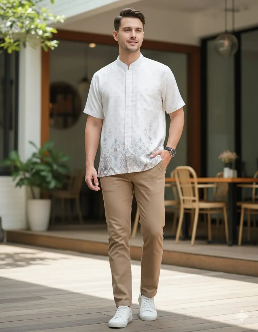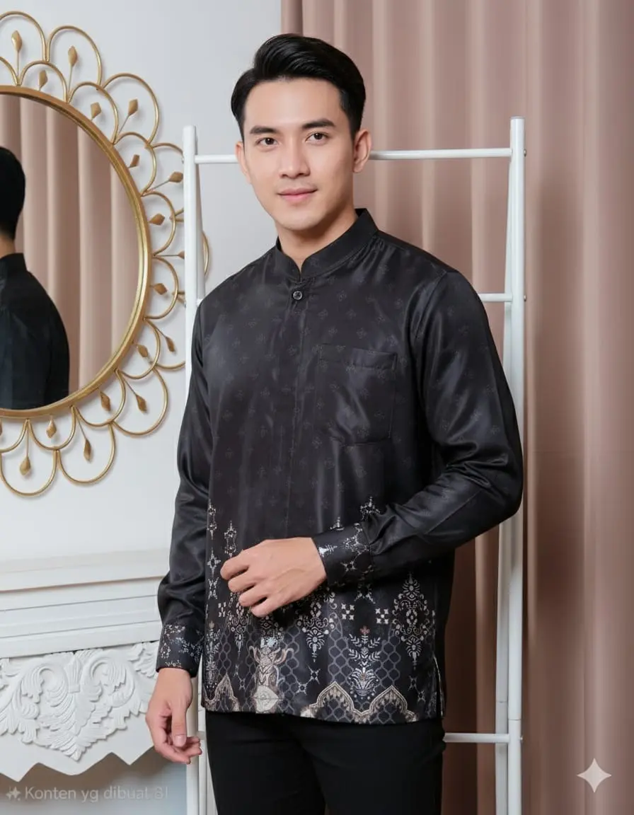 Desain Kinan Cultural Touch terinspirasi dari motif-motif etnik Nusantara yang dikemas dengan gaya modern minimalis. Setiap detail jahitan dikerjakan dengan presisi tinggi untuk memberikan hasil akhir yang rapi, kuat, dan berkelas. Potongan koko ini menonjolkan siluet maskulin yang elegan tanpa mengurangi rasa nyaman, menjadikannya pilihan tepat bagi pria yang ingin tampil sopan namun tetap bergaya.