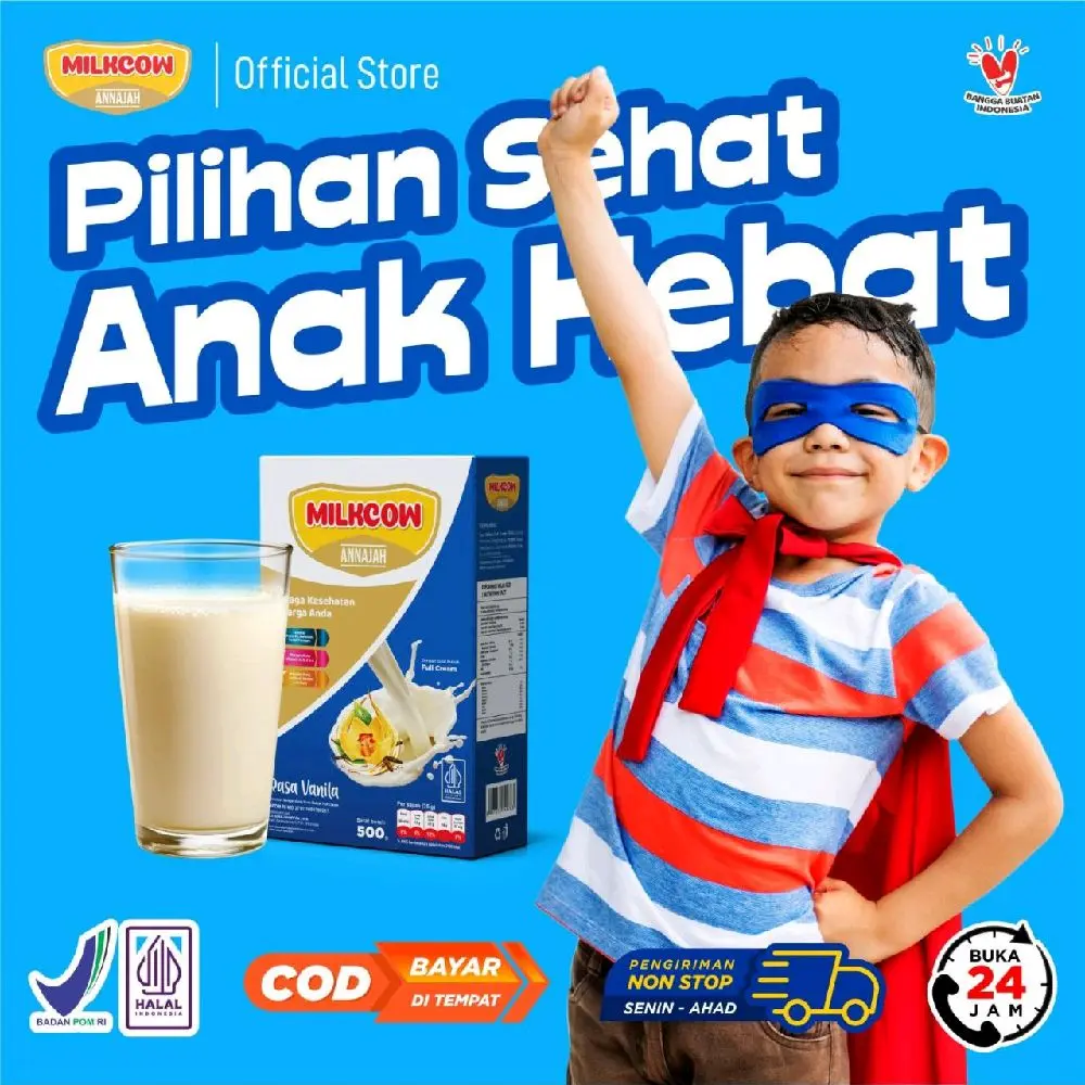 Dapatkan Susu Sapi MILKCOW 500gr untuk mendukung pertumbuhan dan kesehatan anak Anda.