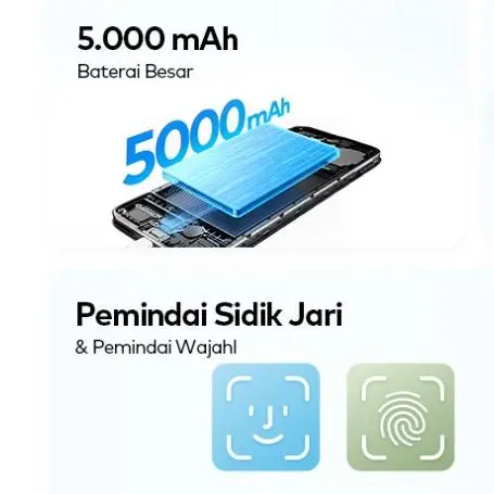 • Baterai besar 5000mAh yang tahan seharian untuk scrolling, streaming, dan gaming