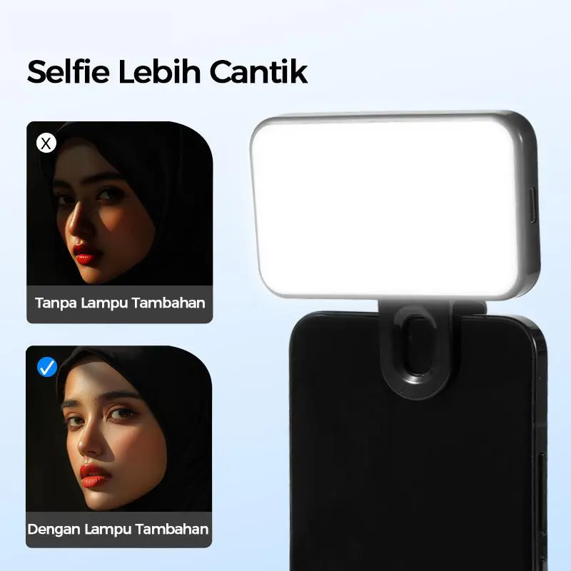 【Portabel dan Ringkas, Terangi Kapan Saja】 Desain mini yang ringan, mudah dibawa, dapat dimasukkan ke dalam saku atau tas tangan. Selalu siap memberikan pencahayaan profesional untuk selfie dan pemotretan Anda di mana saja.