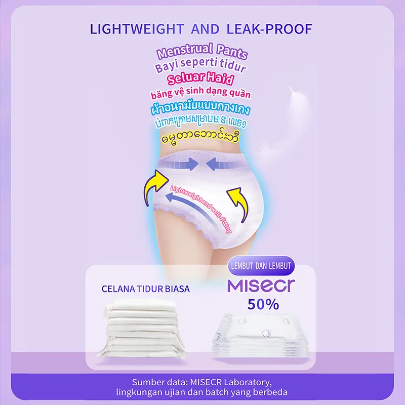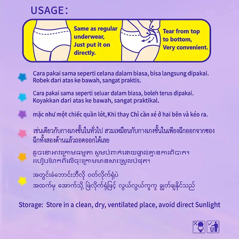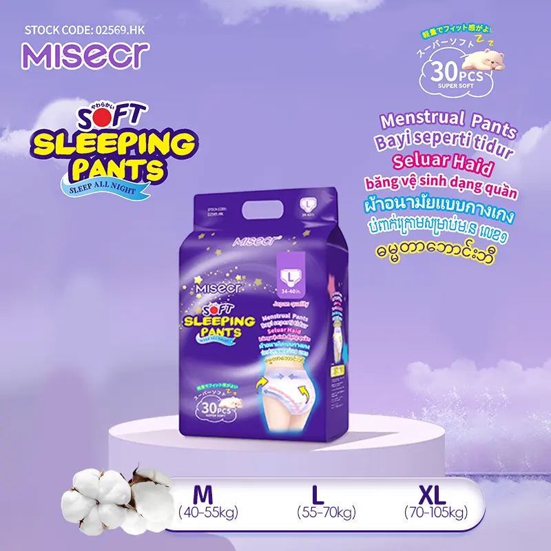 ·Anti Bocor: Celana pembalut tidur wanita ini dirancang untuk mencegah bocor, memberikan kenyamanan sepanjang malam.
