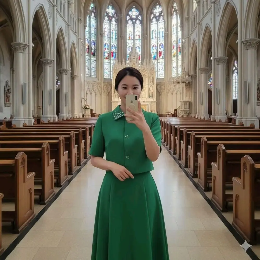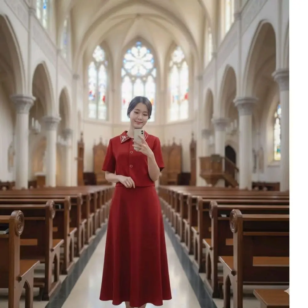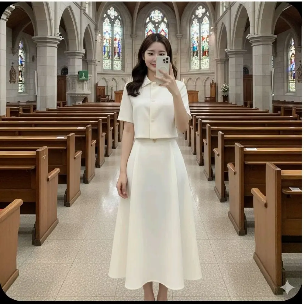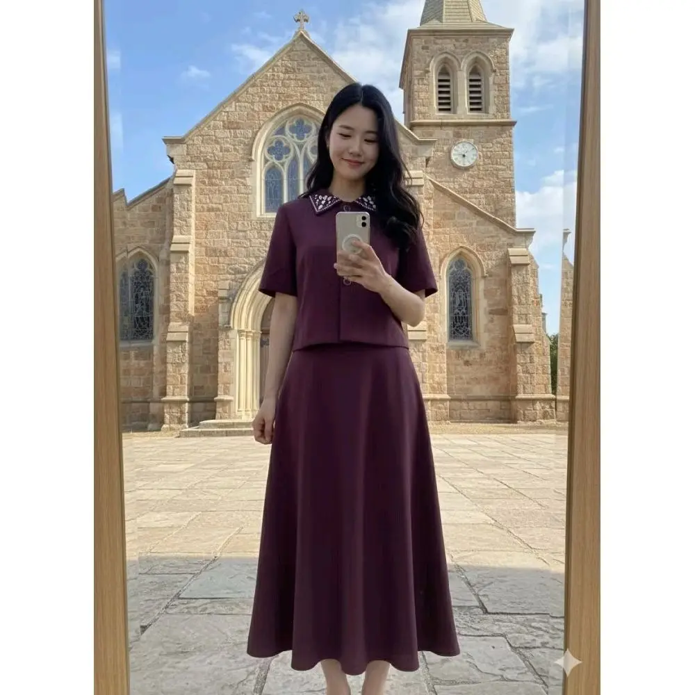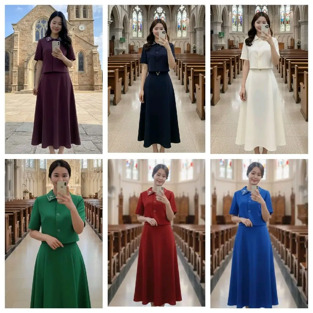 Bahan= Polyester Katingan/Model= Leher model berkerah, kancing aktif, lengan pendek, berfuring. Rok model A, berfuring. NOTE= BAHAN TIDAK MELAR‼️