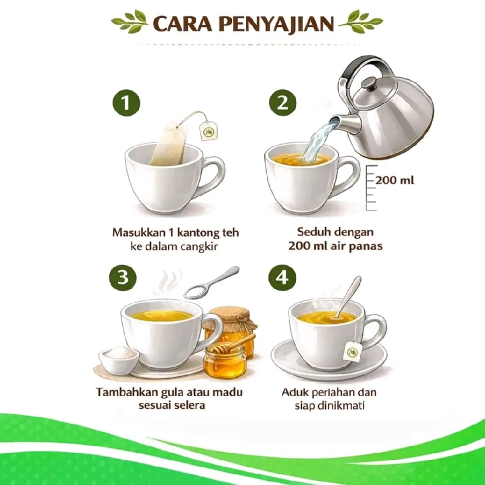 ·Isi 20 Tea Bag: Setiap paket berisi 20 tea bag, cukup untuk konsumsi harian Anda. 📦