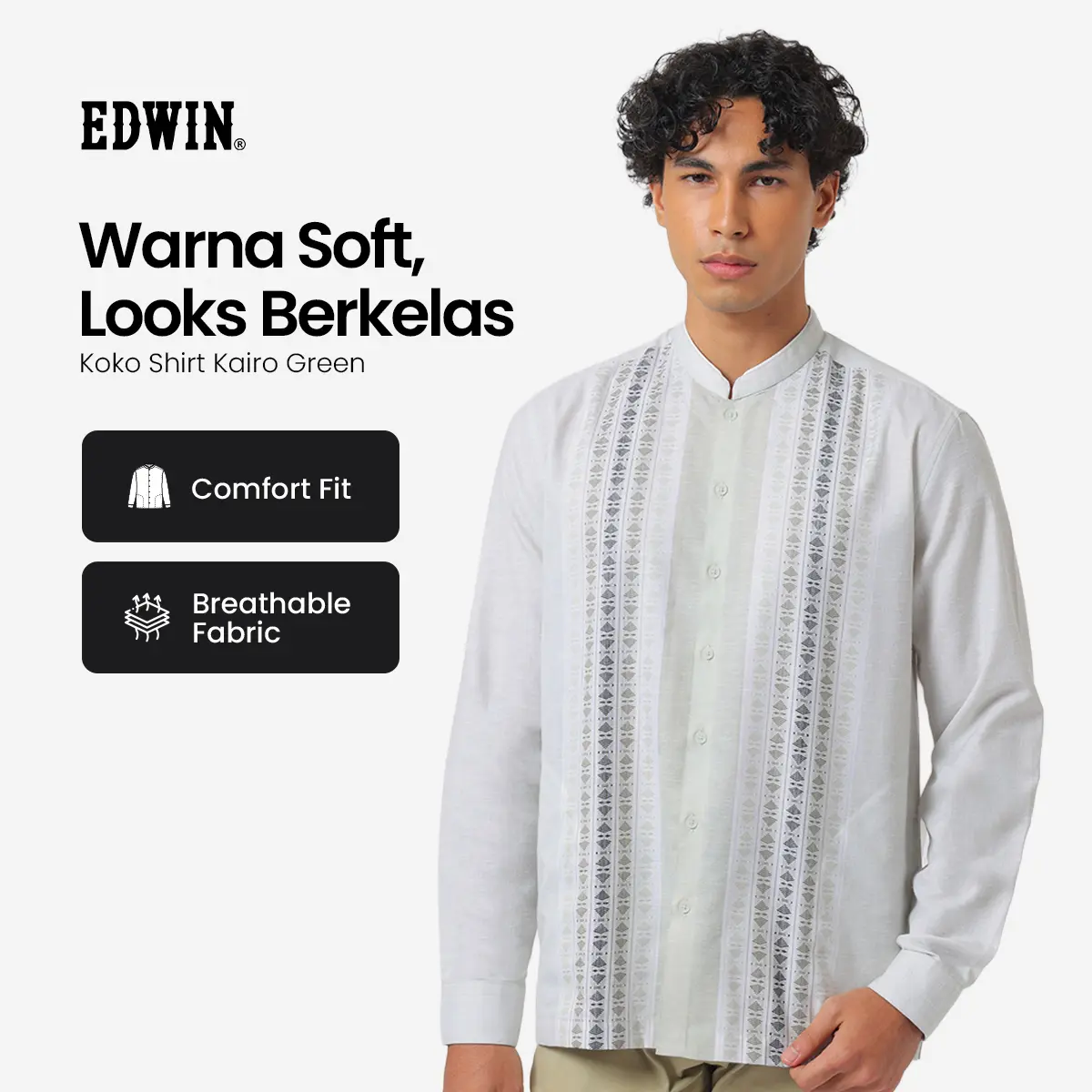 EDWIN JEANS - Kemeja Koko Pria Lengan Panjang KAIRO GREEN Baju Muslim Pria