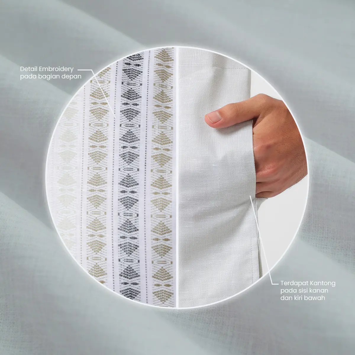 Kaftan lengan panjang ini dirancang dengan Comfort Fit yang memberikan rasa sangat nyaman dan rileks saat dipakai. Menggunakan bahan kaftan yang lembut di kulit, ringan, dan cocok untuk pemakaian seharian. Tampilan semakin elegan dengan full embroidery pada bagian body depan yang memberikan kesan eksklusif. Dilengkapi slit/belahan di bagian bawah untuk keleluasaan bergerak serta kantong di sisi kanan dan kiri yang fungsional untuk kebutuhan harian.