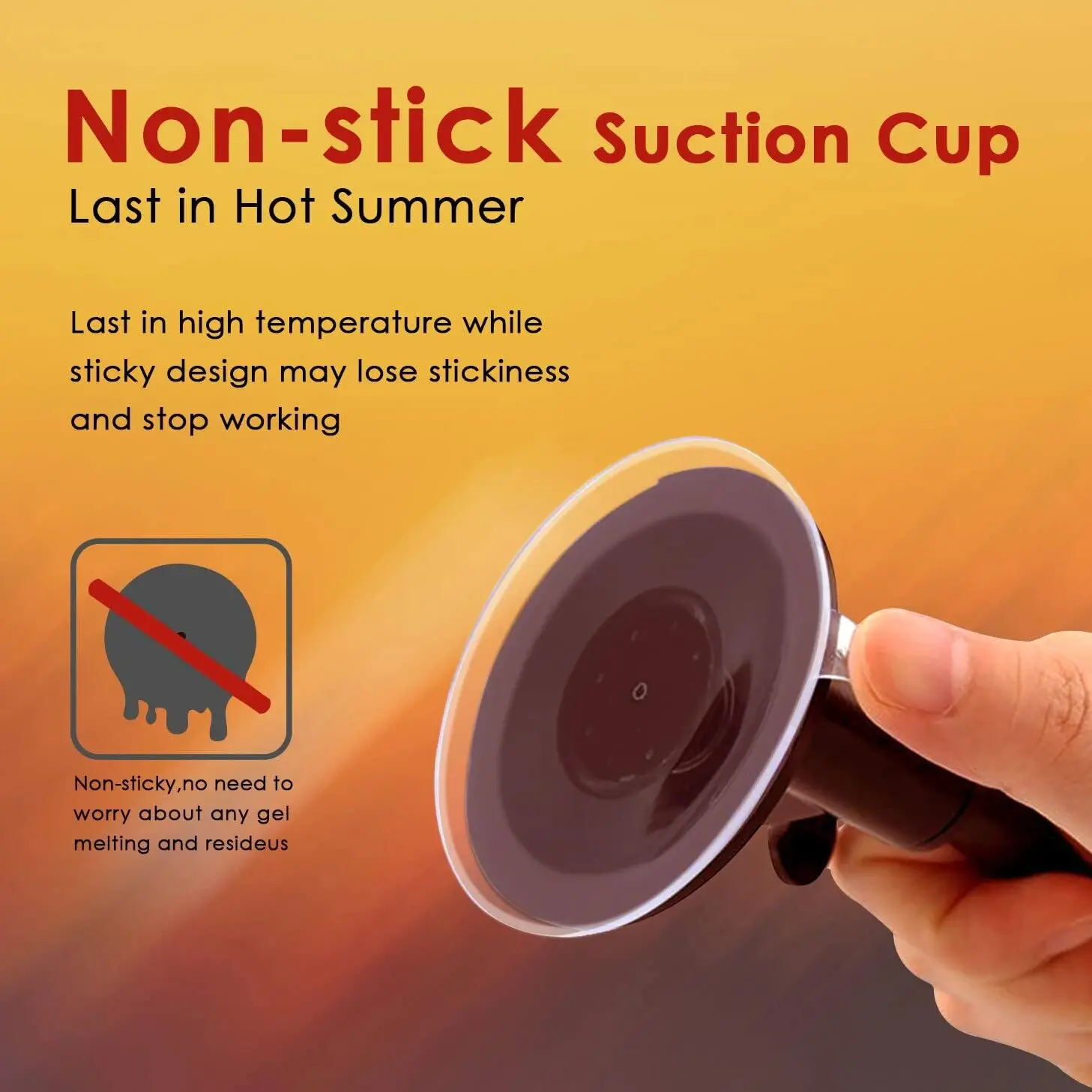 No Glue Suction Cup Windshield Holder, Can Last in Hot Summer. Note: It can't be used to car dashboard.The non-sticky suction cup can stick to windshield/glass sturdily as sticky one does. What's more, it will work in hot weather, because its suction will last in high temperature while the sticky suction cup may lost stickiness and stop working.
