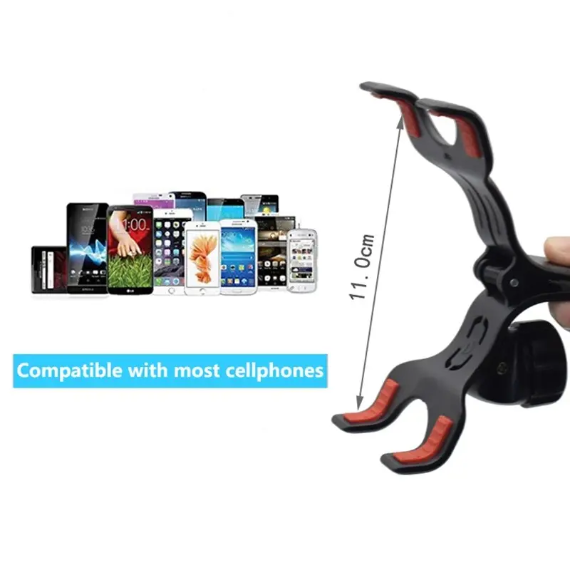 Adjustable clamp can hold devices up to max 3.54 inches (90mm) for width, fits most types of phone .Red rubbers on clamp can well protect your phone notdamaged. You can use this phone mount if you have a pop socket on the back of your phone.You don't need to remove pop sockets and the clamp will avoid to damage it.