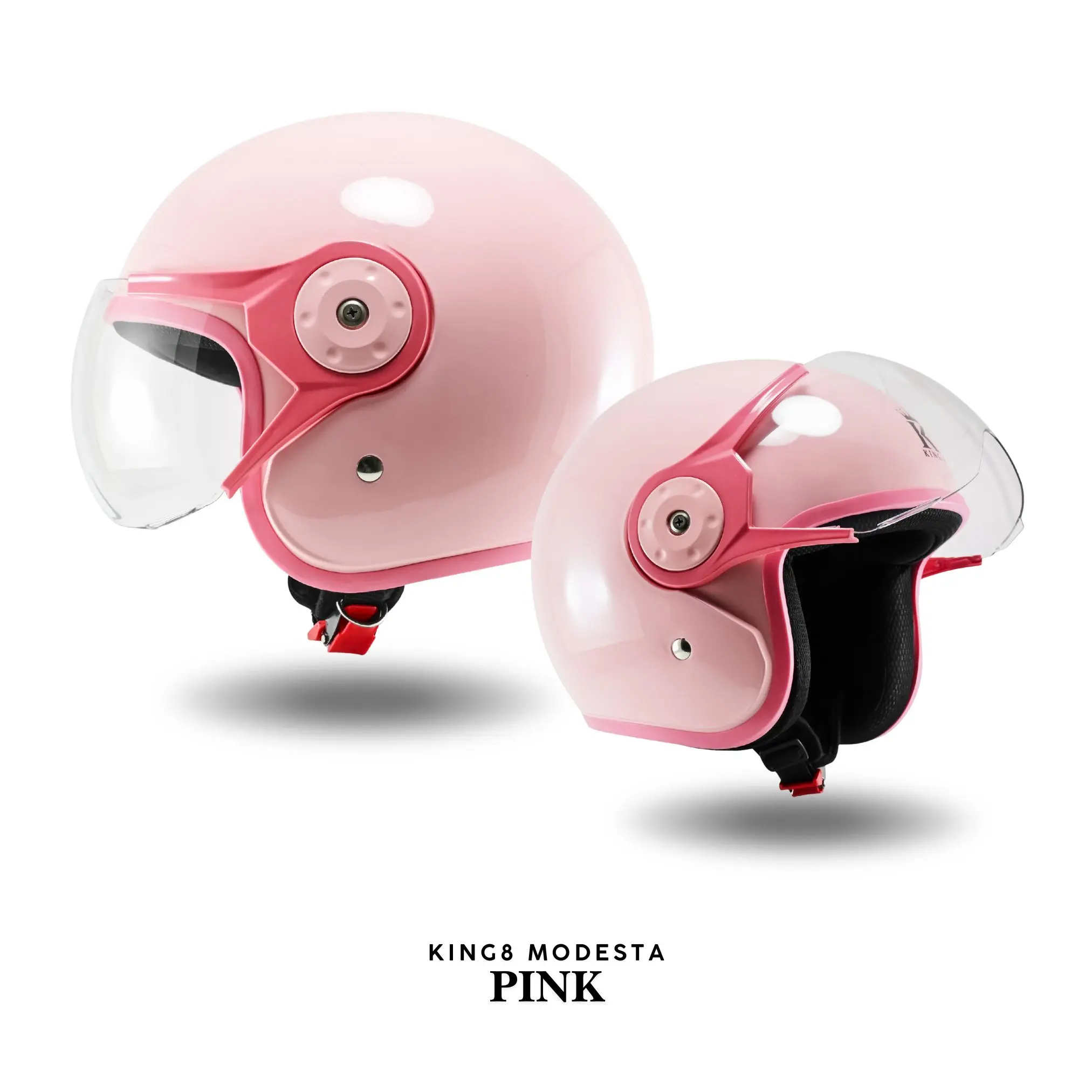 ·King8 Modesta Bogo Cewek Kekinian: Helm ini memiliki desain yang modis dan modern. Cocok untuk wanita yang ingin tampil stylish dan kekinian. Ideal untuk digunakan sehari-hari atau acara khusus.