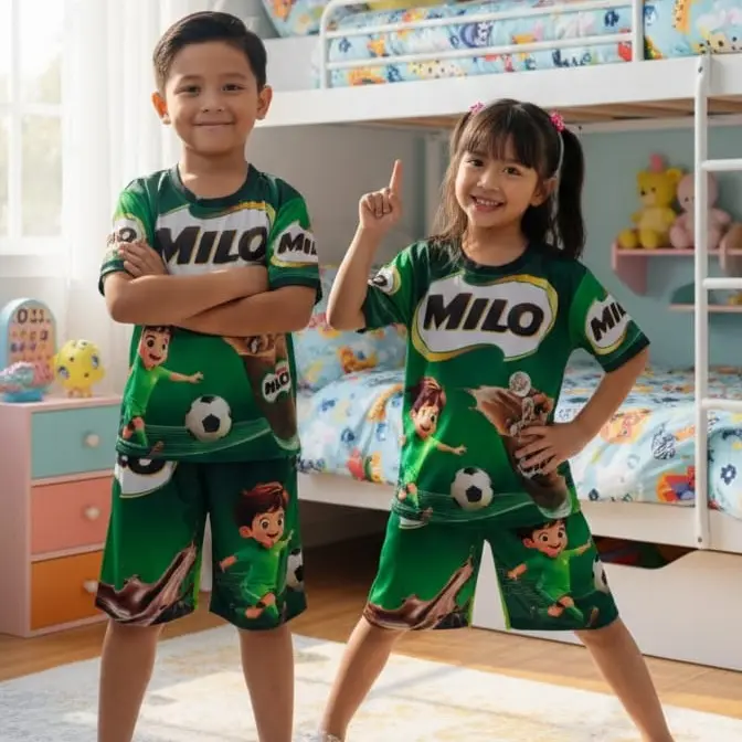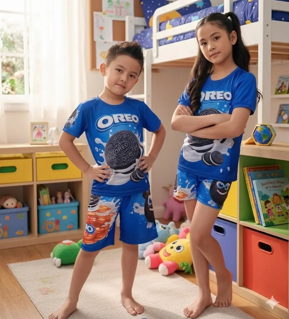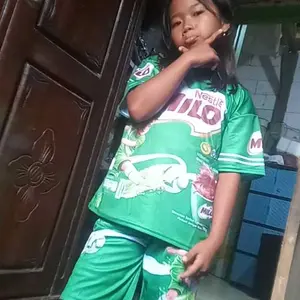 Setelan anak ini adalah pilihan yang tepat untuk kebutuhan sehari-hari. Dengan motif makanan dan minuman, anak-anak akan merasa lebih nyaman dan senang memakainya.