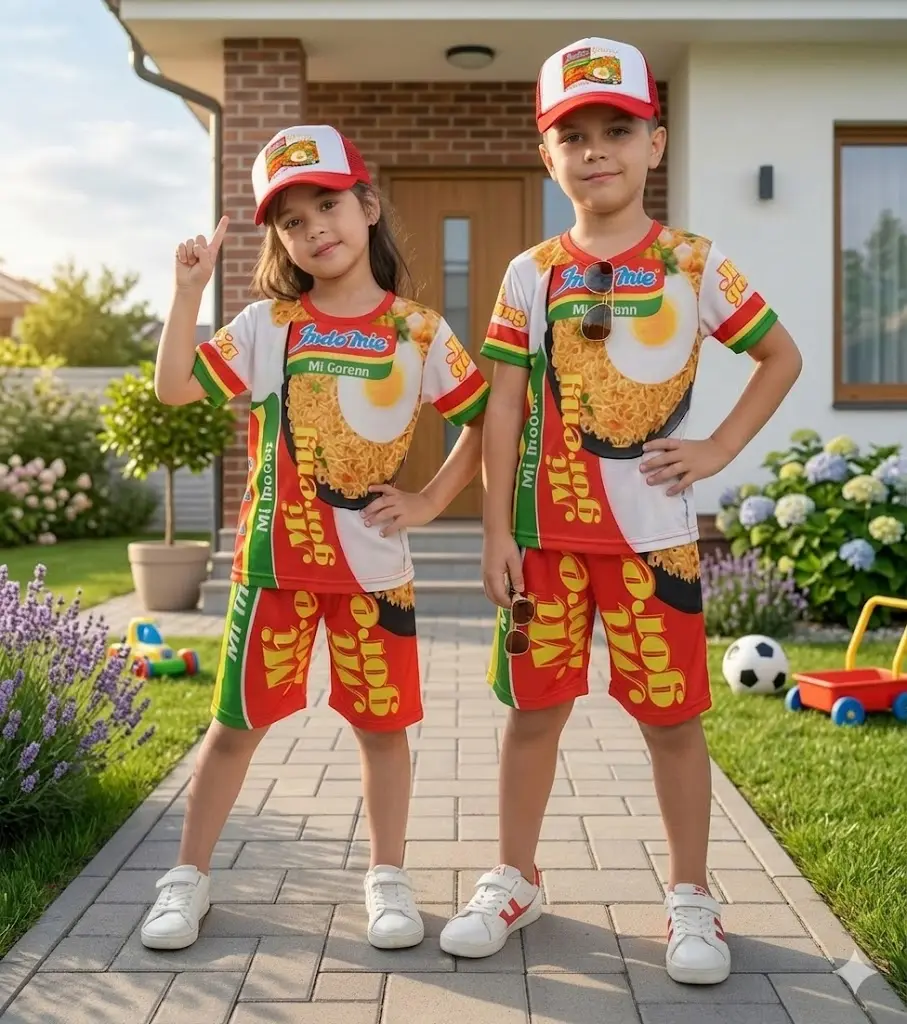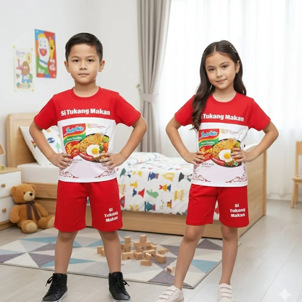 Setelan Anak Harian Viral Terbaru Limited Edition Motif Makanan Mie goreng dan gambar Minuman untuk Usia 1-10 Tahun Desain Unik Nyaman dan Senang Dipakai