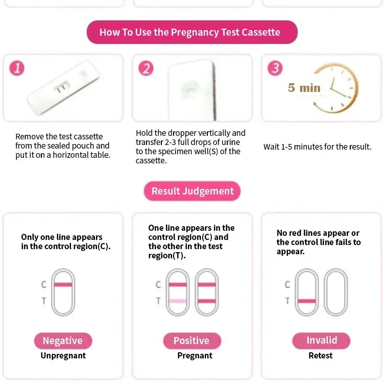 Alat tes kehamilan dari HLVDmenggunakan double antibody sandwich dan colloidal gold immunochromatography yang mampu mendeteksi hormon HCG secara spesifik dalam urine. Ini memastikan akurasi tinggi, sehingga Anda tidak perlu bingung dengan garis samar atau hasil yang berubah setelah beberapa menit.