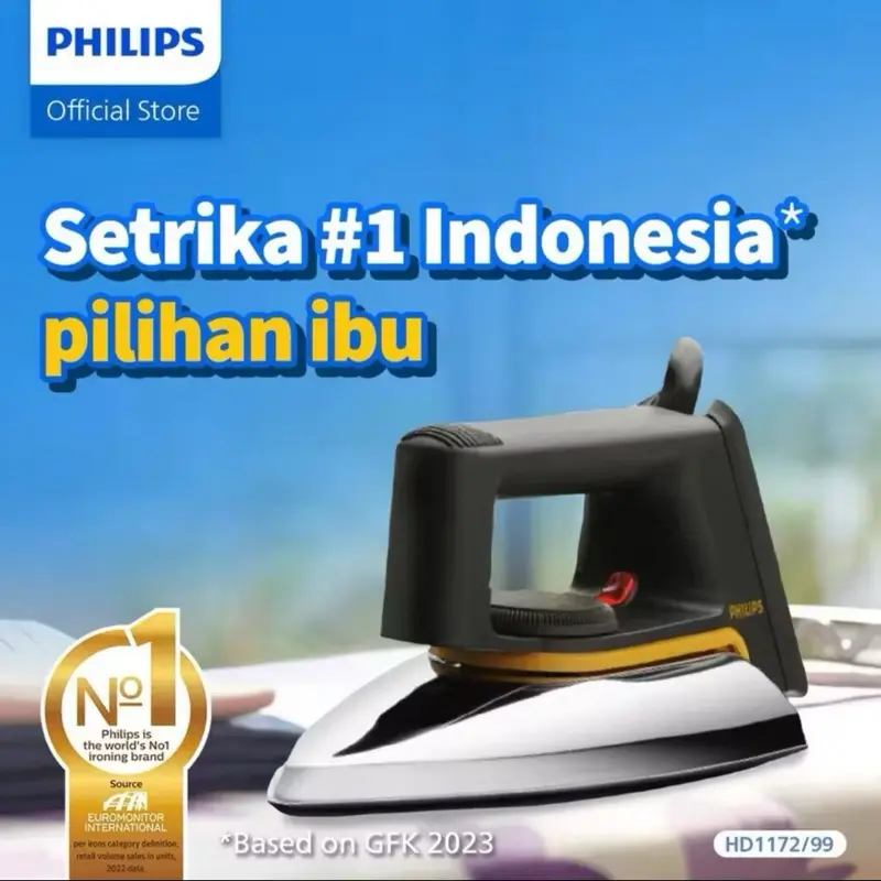 Philips HD1172 adalah setrika listrik legendaris yang dikenal tahan lama dan efisien untuk menyetrika berbagai jenis pakaian. Desain klasik dengan ujung runcing memudahkan Anda menjangkau area sulit seperti sela-sela kancing.