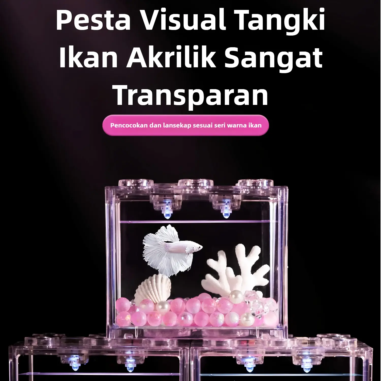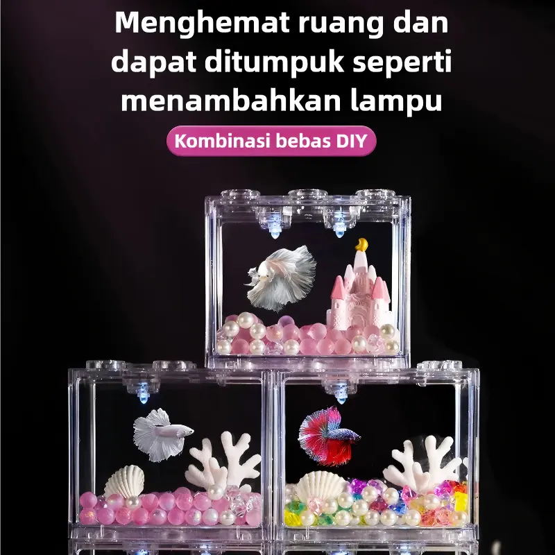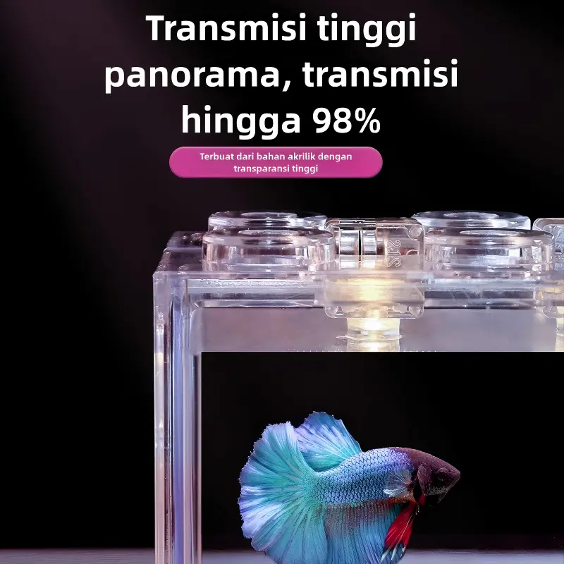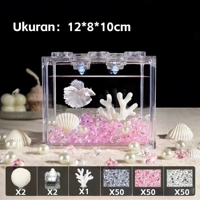 Set akuarium mini ini dirancang praktis dan estetik, cocok untuk pemula maupun pecinta ikan hias. Desain transparan membuat ikan terlihat lebih jelas dan cantik, sangat cocok untuk ikan cupang, guppy, dan ikan kecil lainnya.