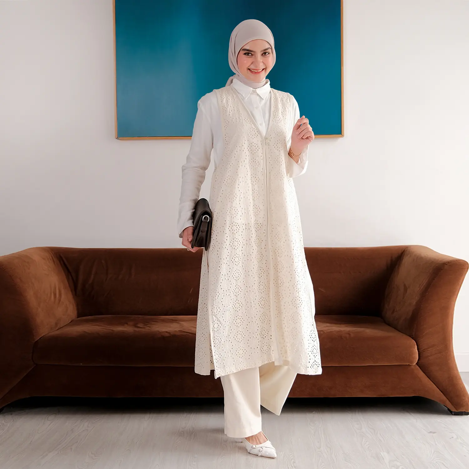• Seroja Embroidery Volume 1 — Vestnya memakai bahan Cotton Embroidery yang ringan, adem, dan jatuhnya cantik, nyaman. Bawahan pants berbahan Airy Linen yang adem, dan halus di kulit, super nyaman dipakai walau aktivitas padat pas lebaran