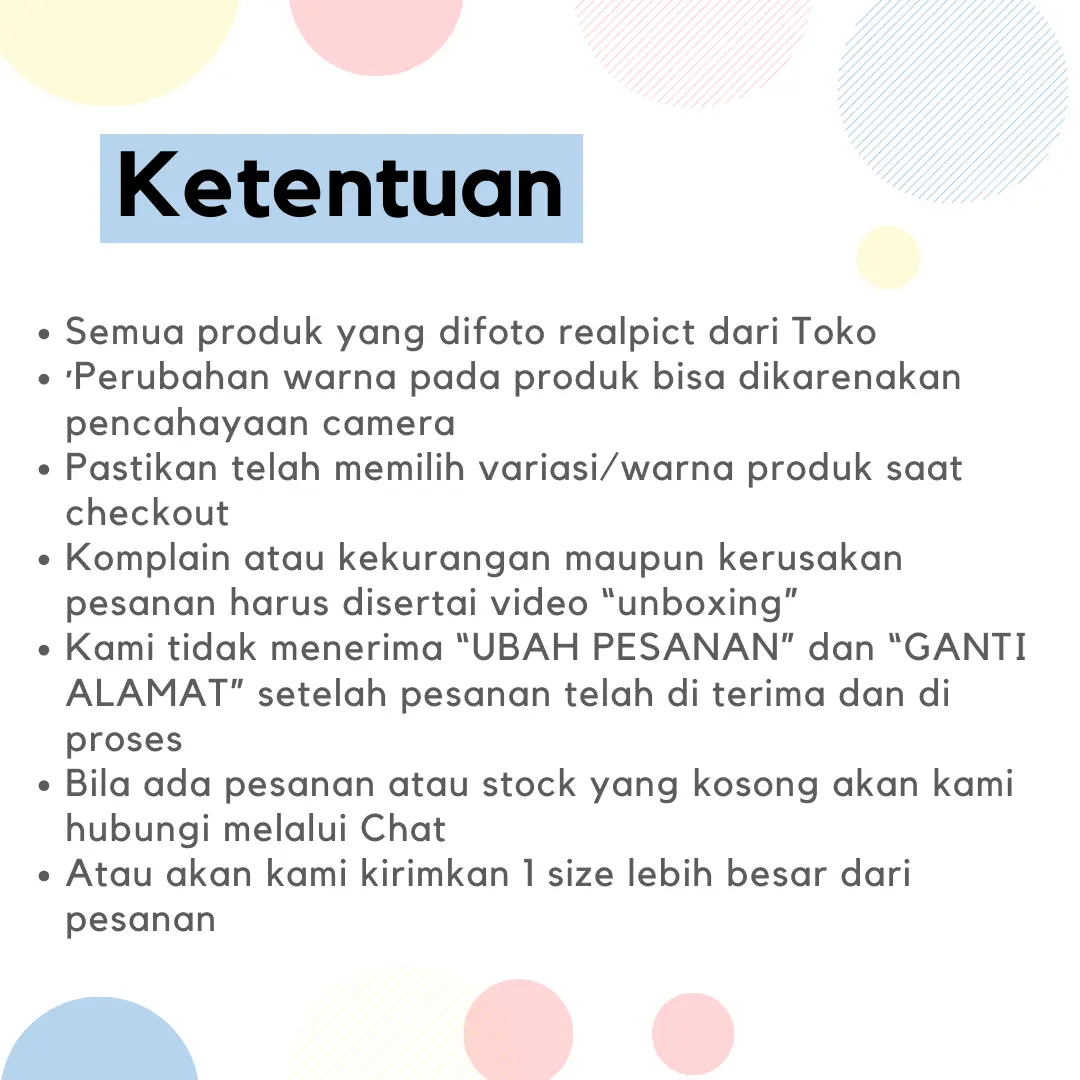 - Harap sertakan Video Unboxing pada saat Complain, di luar itu kami tidak menerima Complain. Apabila di chat lebih dari 2 hari tidak di balas untuk konfirmasi barang yang kosong, barang kita kirim Random ya. Terimakasih!
