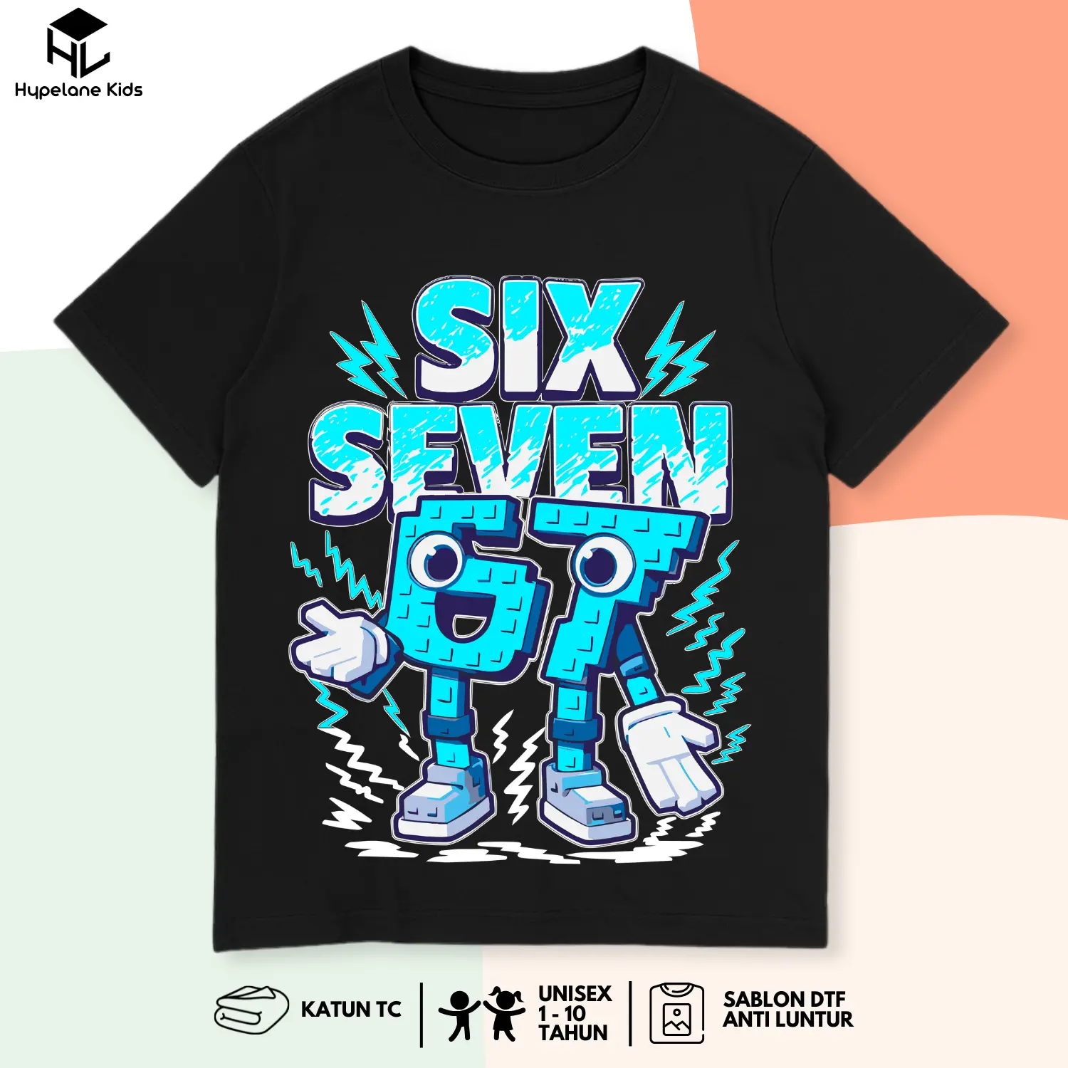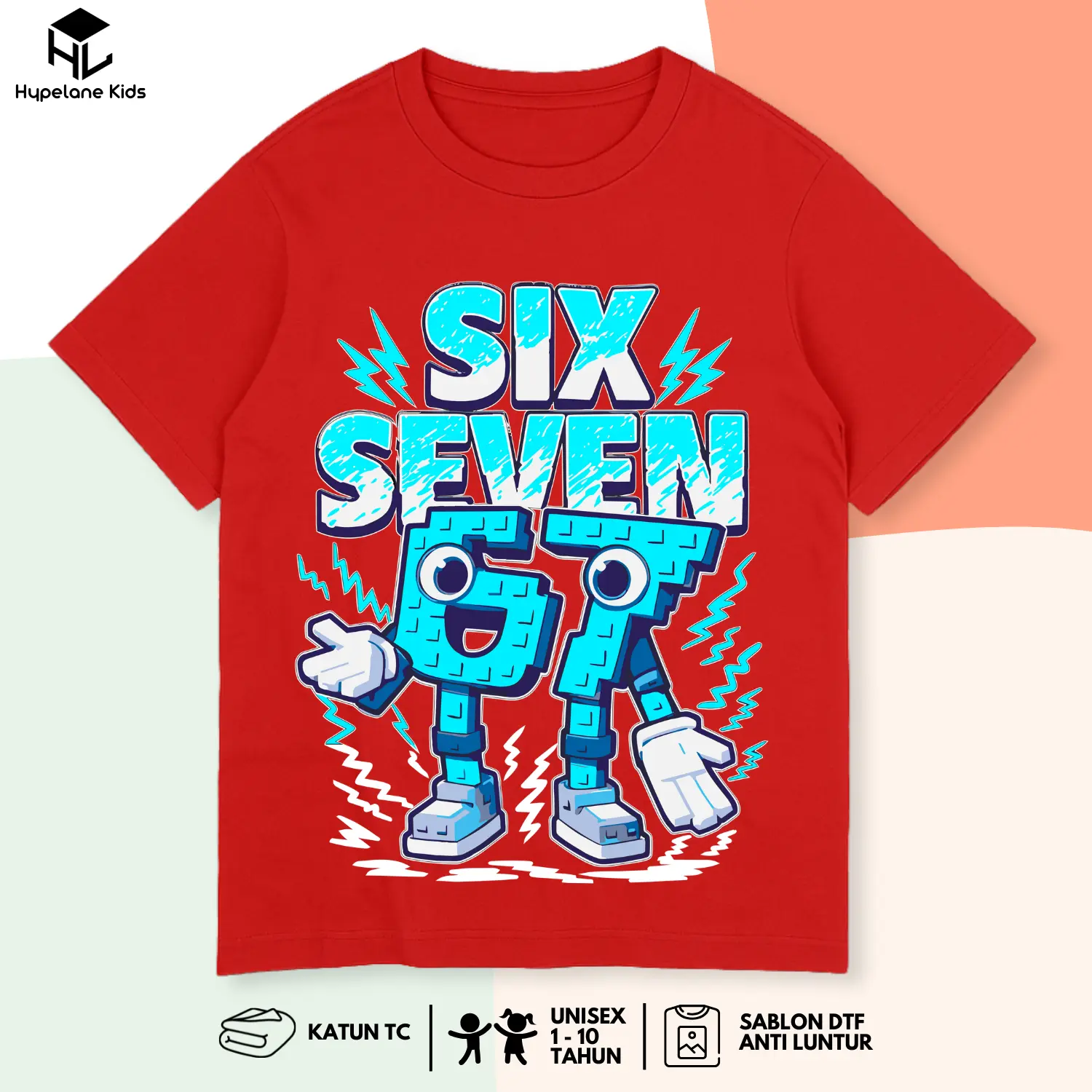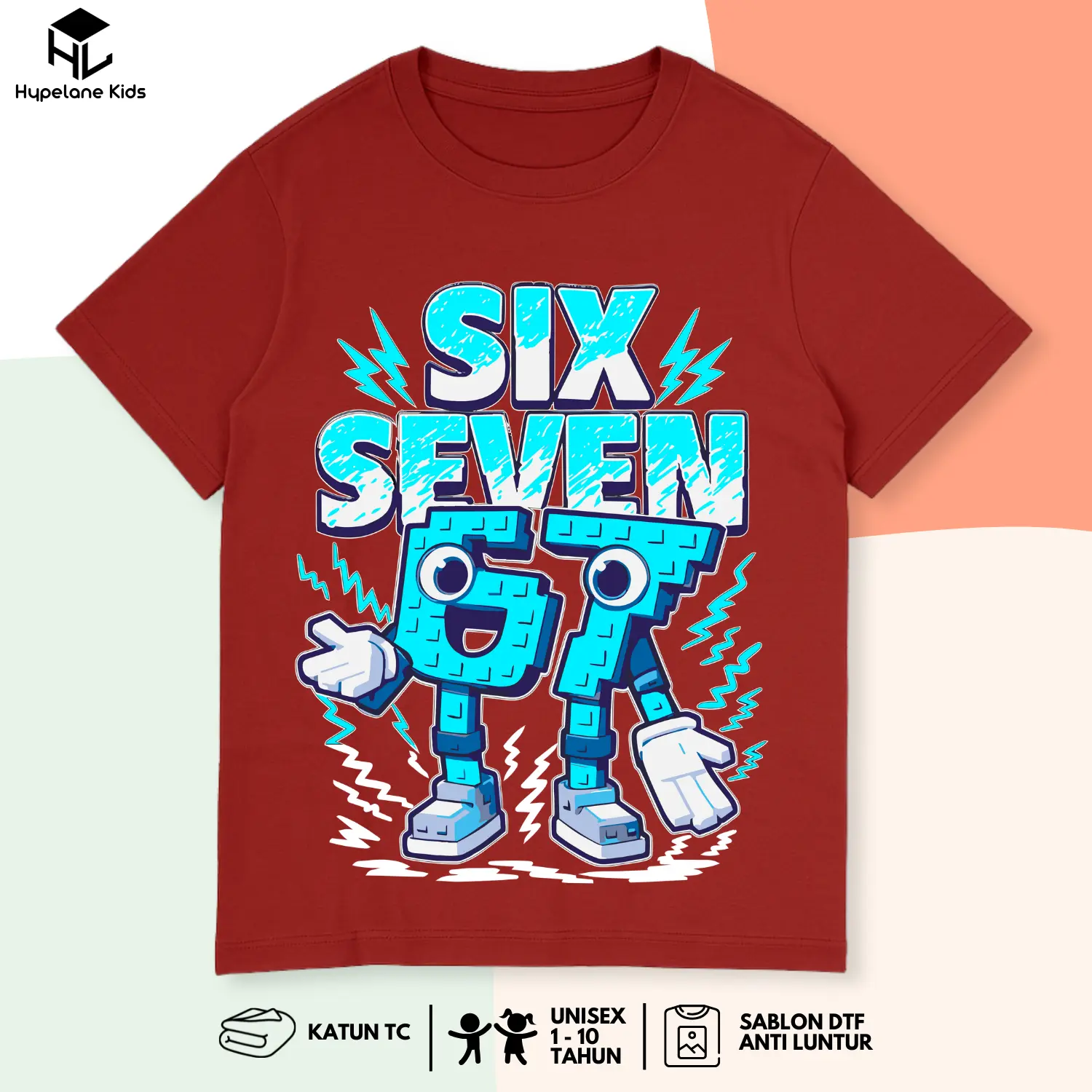 Baju Kaos SIx Seven Anak Laki Laki Karakter Anomali 67 Steal A Brainrot Keren Umur 1 - 10 Tahun PB
