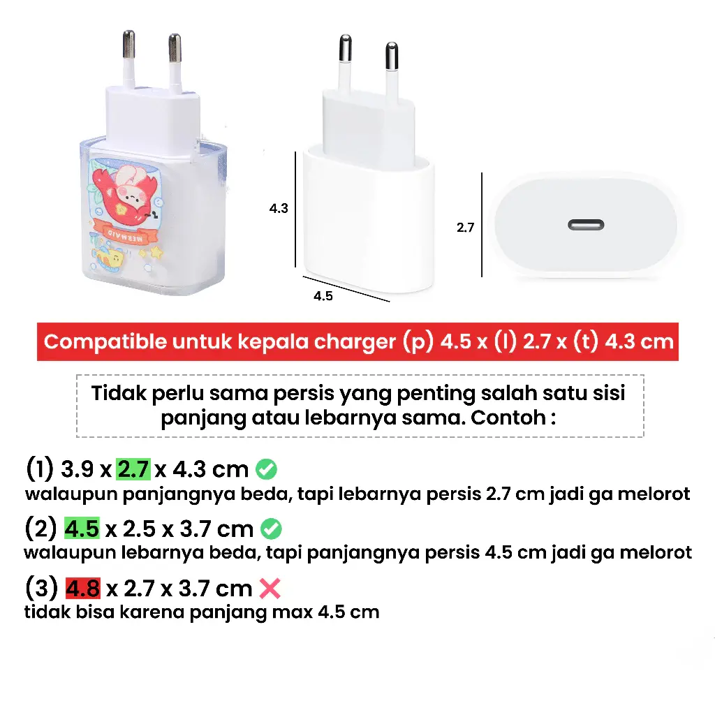 - Melindung Kepala Charger dan ujung kabel.
