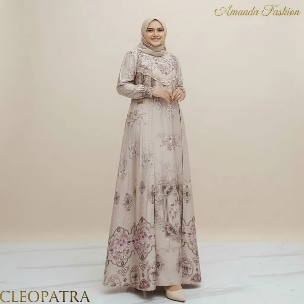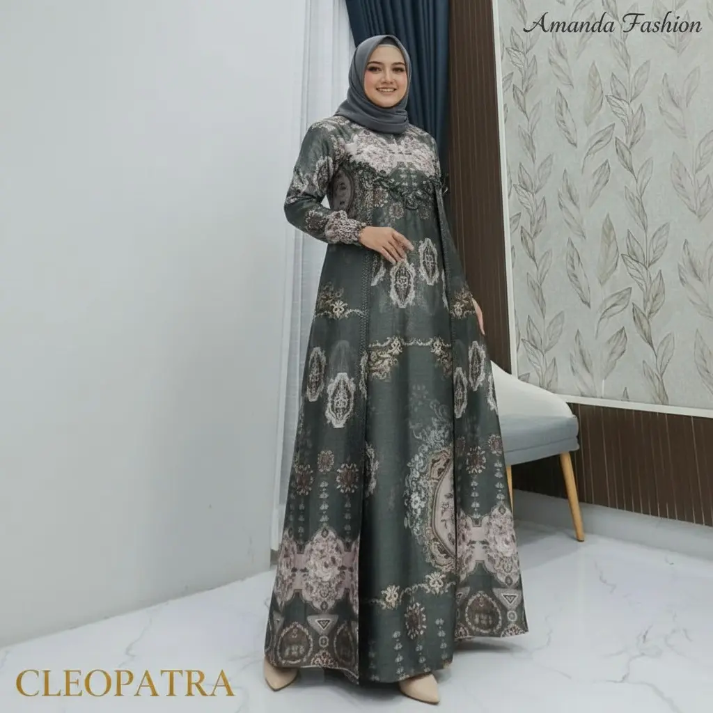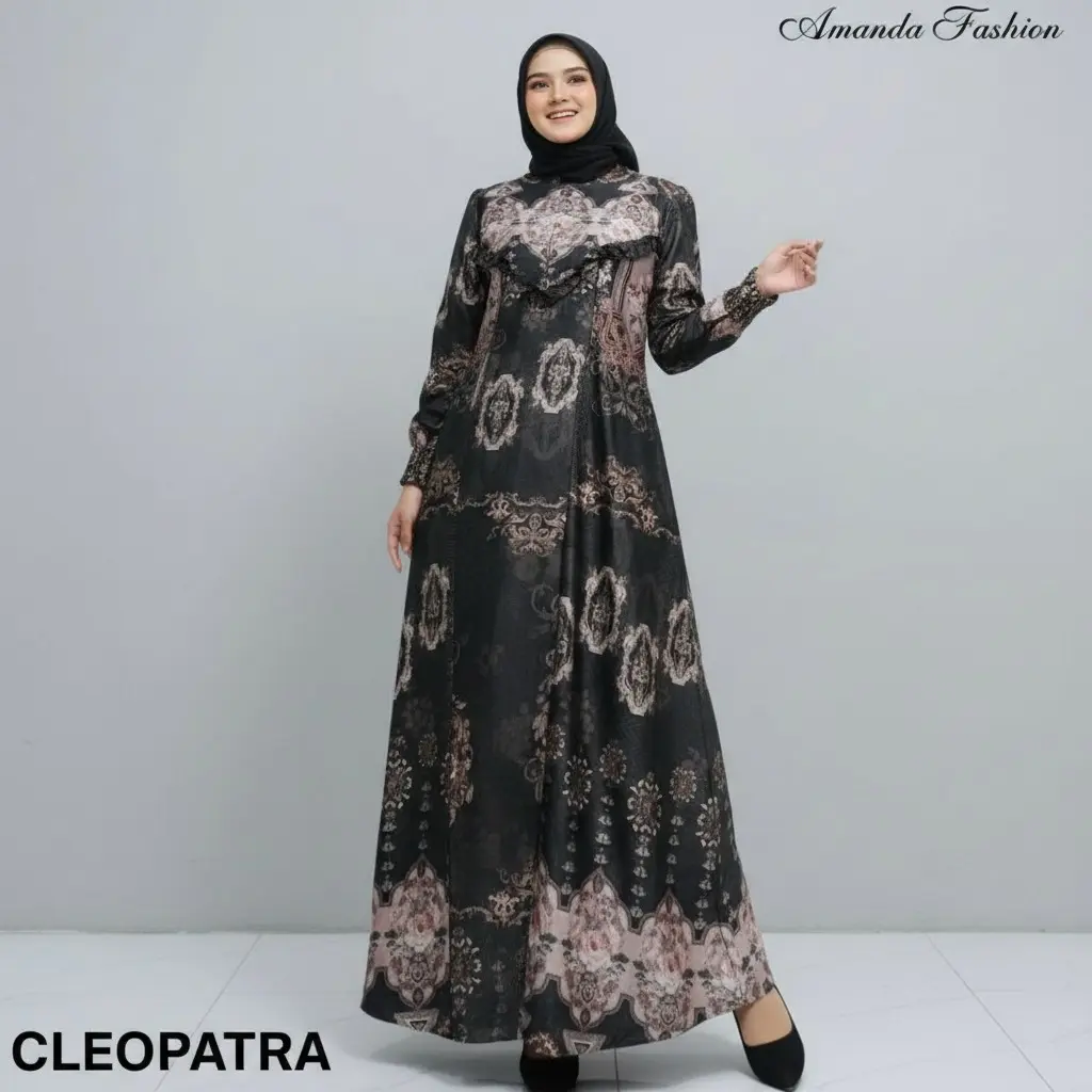 Gamis Amanda Cleopatra Bahan Silky Printing Motif Cantik Rompi Kanan Kiri MOTIF BUNGA RANDOM(Free Pouch)