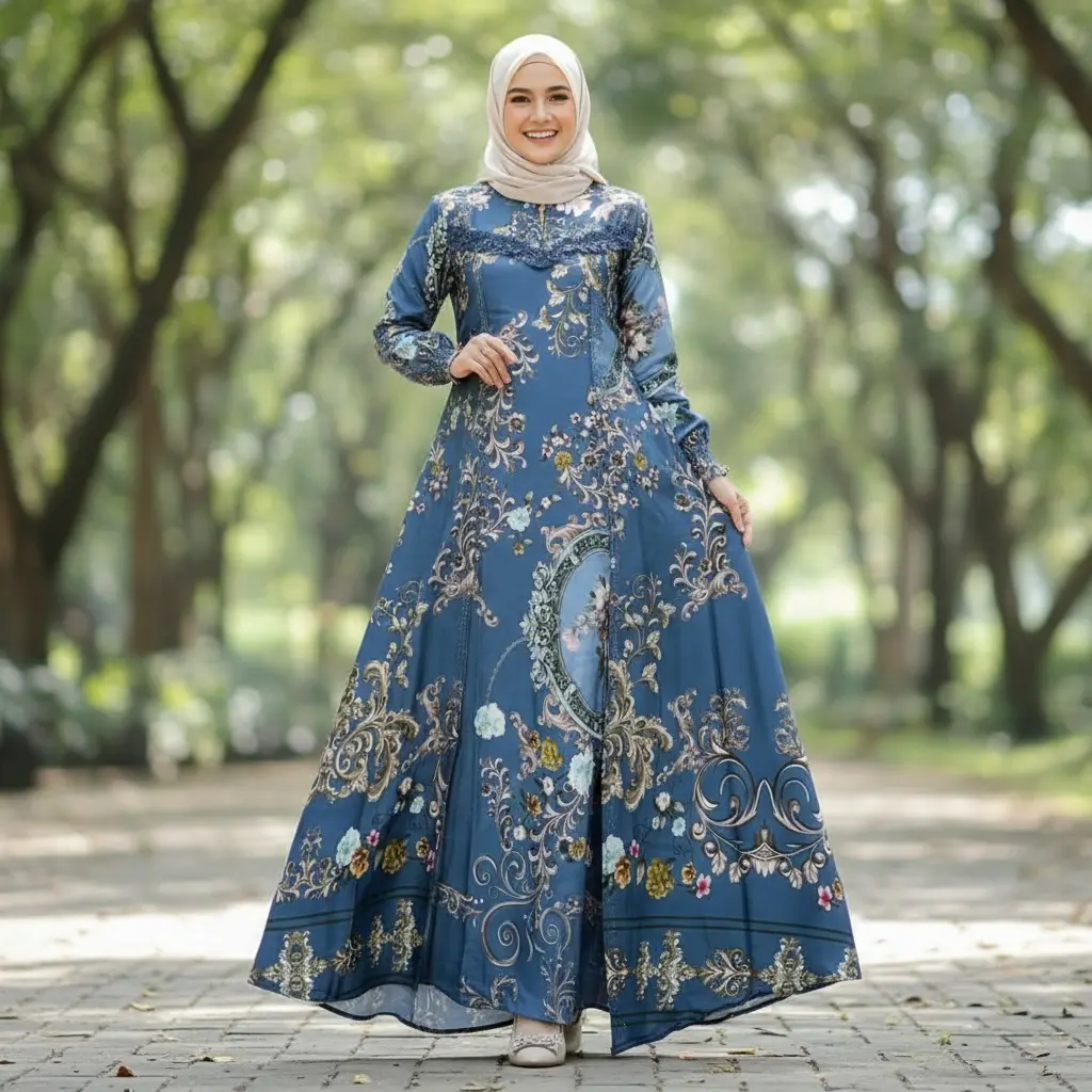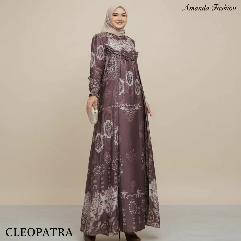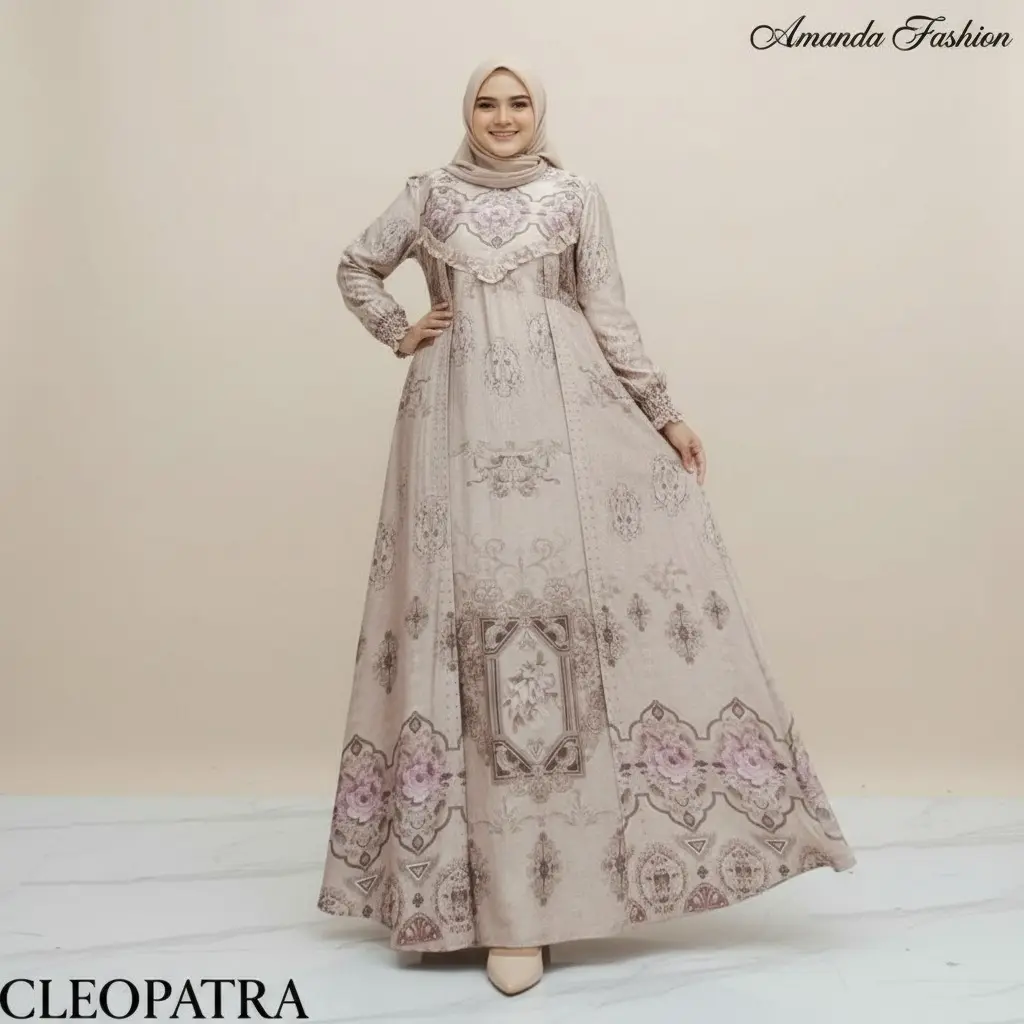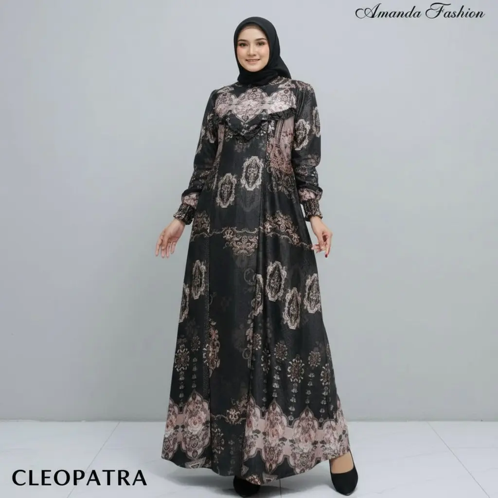 Gamis Amanda Cleopatra Bahan Silky Printing Motif Cantik Rompi Kanan Kiri MOTIF BUNGA RANDOM(Free Pouch)