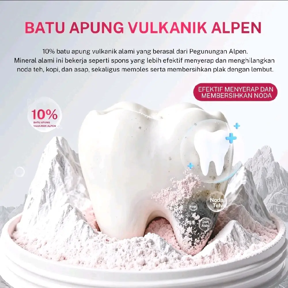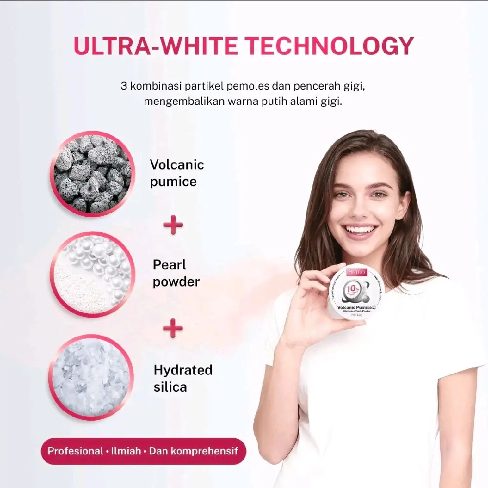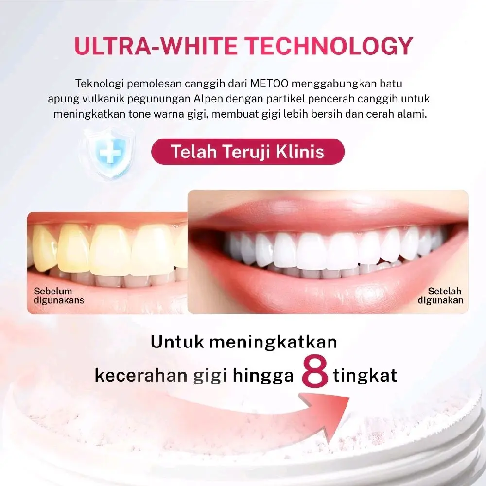 ·Bahan Utama: Meeto menggunakan bahan vulkanik untuk memberikan efek pemutihan gigi. 🌋