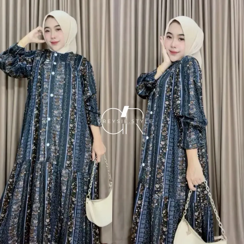 Dress Amanda Series Raya Bahan Rayon Premium Lengan Balon Kancing Depan Busui LD 115 LD 130 New Trend 2026
