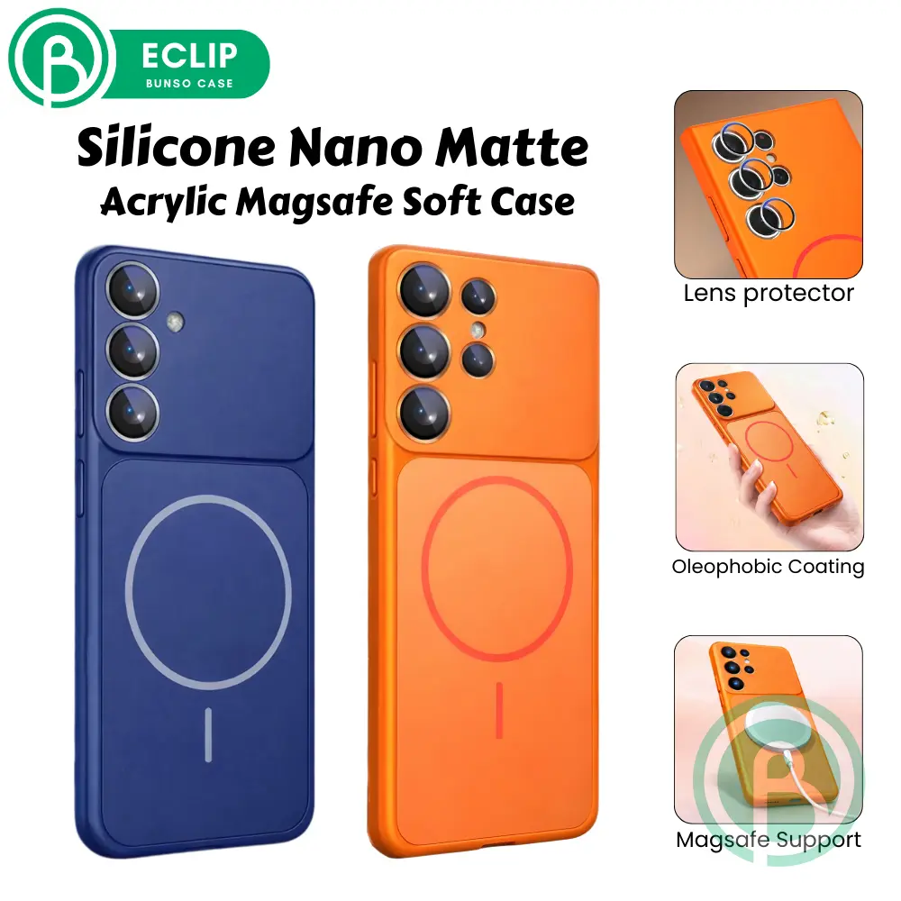 Bunso ECLIP Soft Case untuk SAM S26 Ultra Edge Plus FE S25 S24 S23 A57 A37 A17 A07 A56 A36 A26 A16 A06 A55 A35 5G 4G Magnetic Acrylic Organic Silicone Nano Matte Slim Cover Casing Silikon Lens Camera Protection Viral S26Ultra S25Ultra S24Ultra S24FE