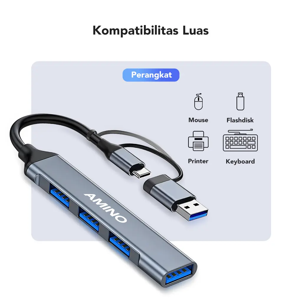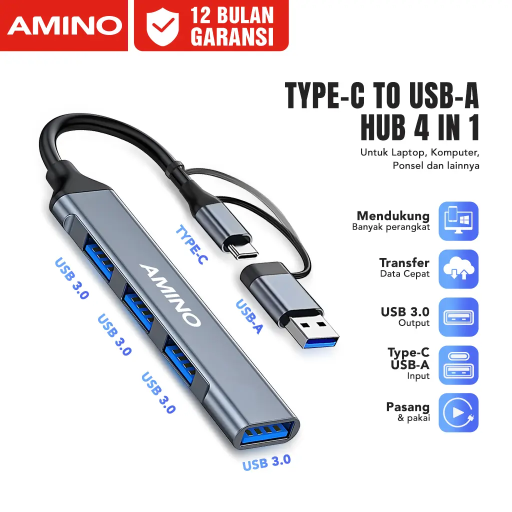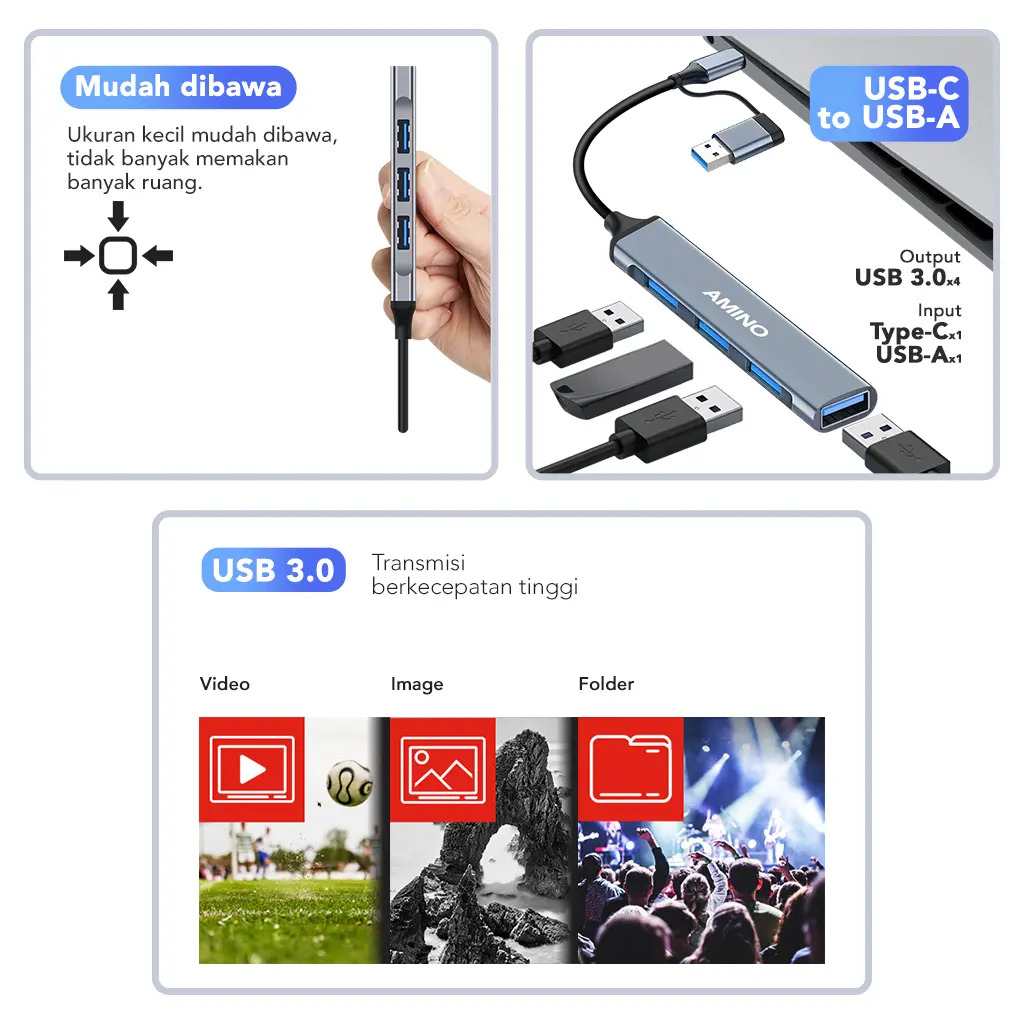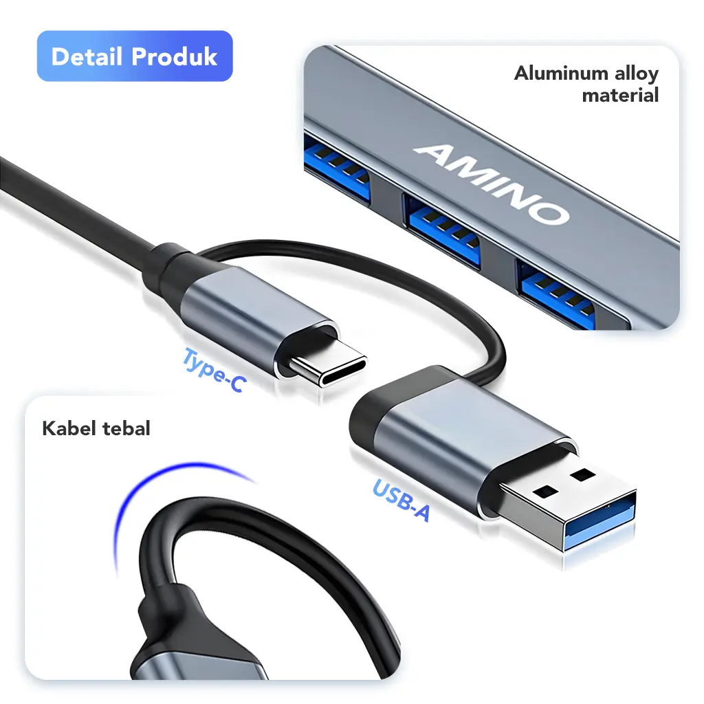 Port : 4 port ekspansi USB2.0x2+USB3.0x1+USB-C2.0X1 untuk semua kebutuhan konversi data Anda.