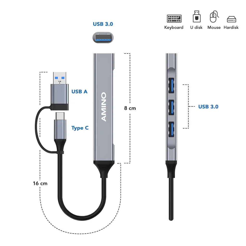 - Port : TYPE C / USB to USB2.0x2+USB3.0x2
