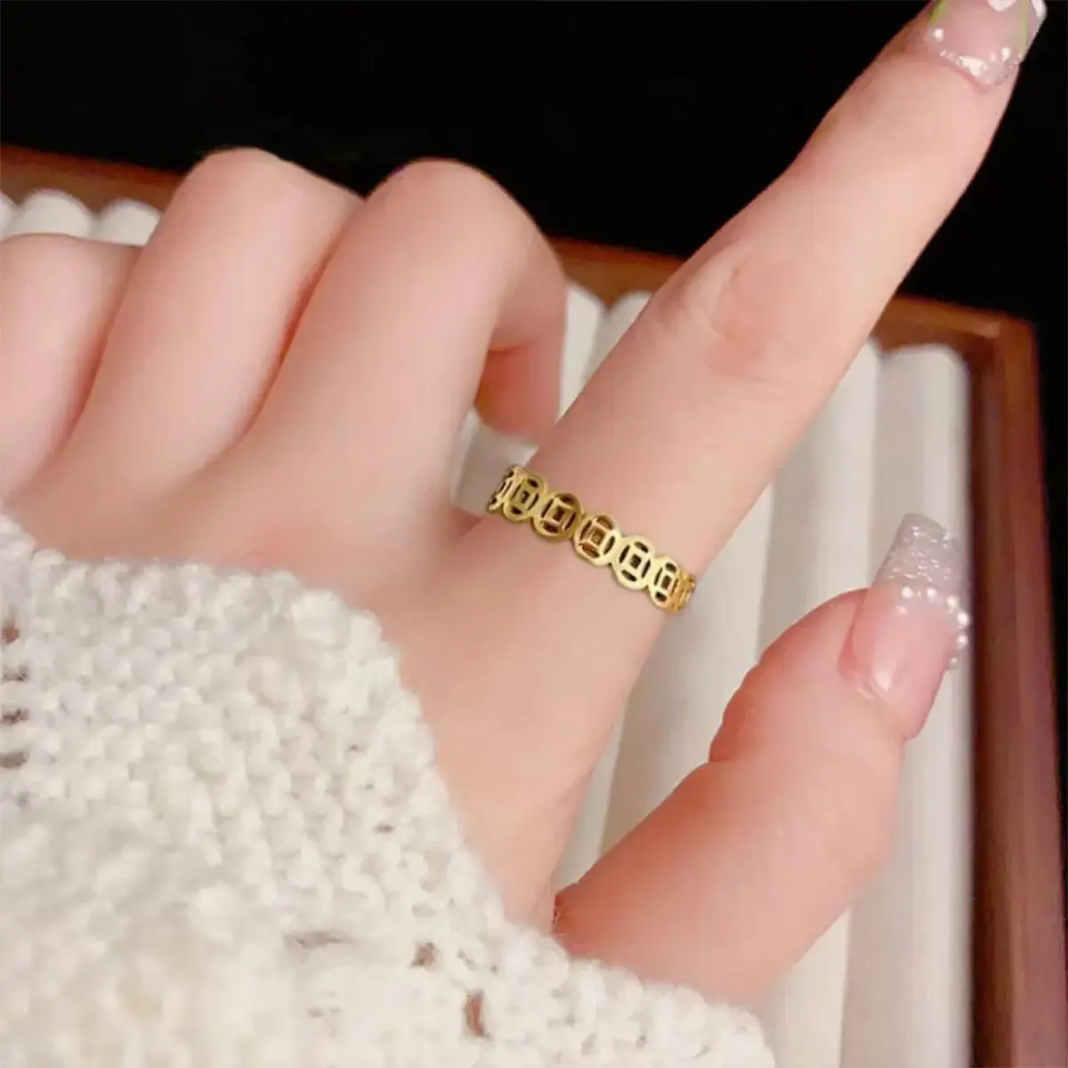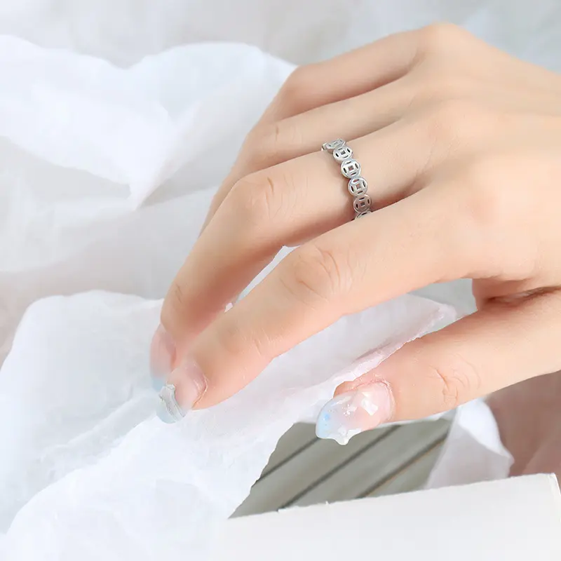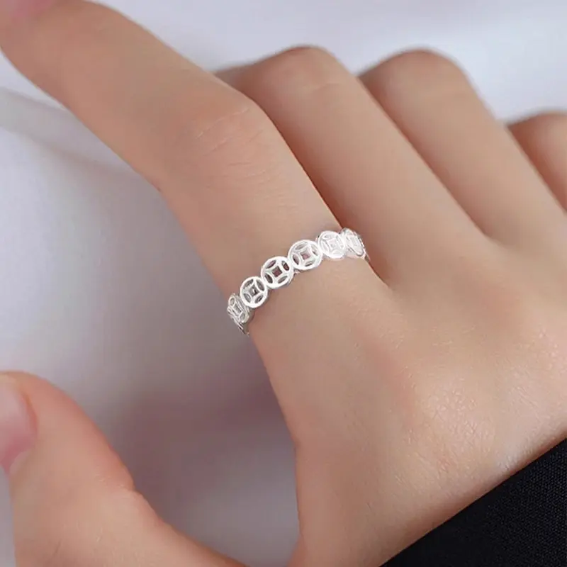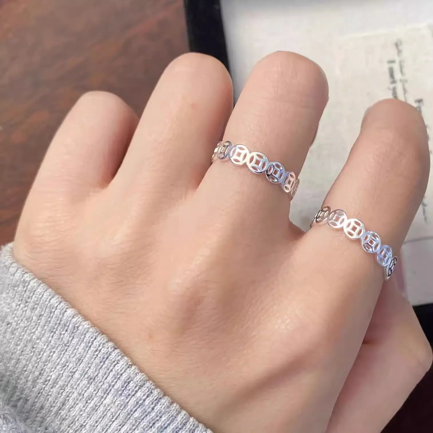 Cincin Perak Sterling 925 Pola Uang Mode Wanita - Hypoallergenic/Tahan Air