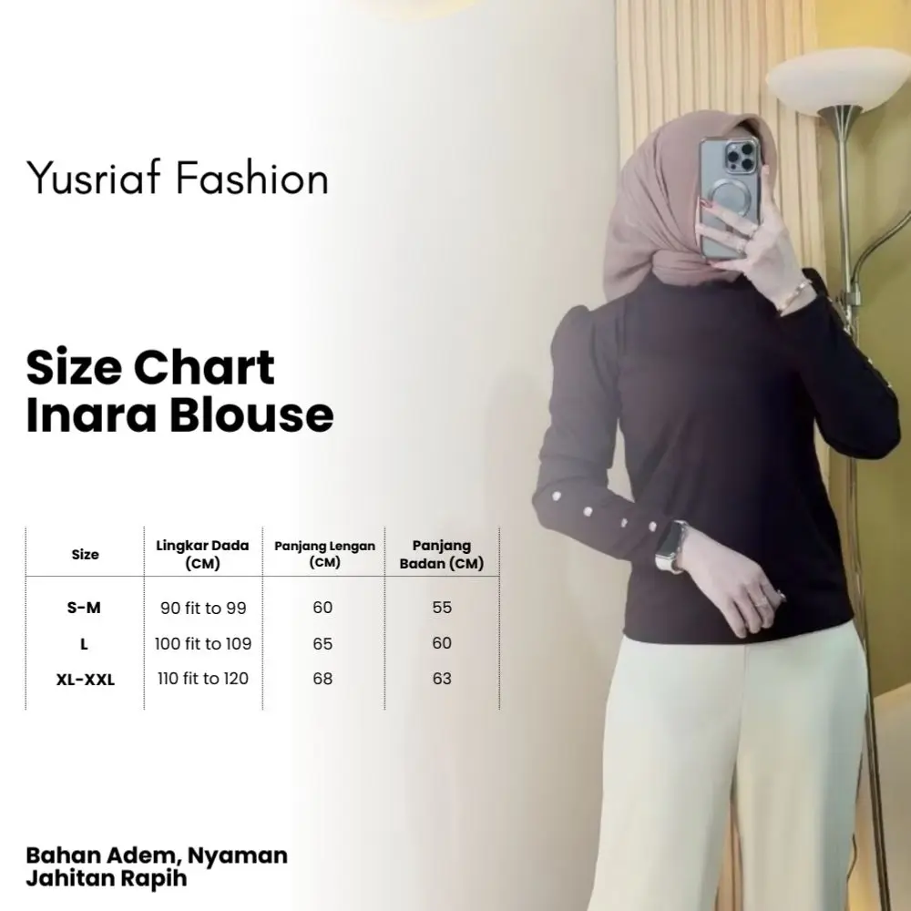 Dengan jahitan rapi dan kualitas premium, blouse ini menjamin kenyamanan dan kepercayaan diri saat dipakai. Jadikan Blouse Wanita Inara pilihan utama untuk tampilan yang selalu memukau!