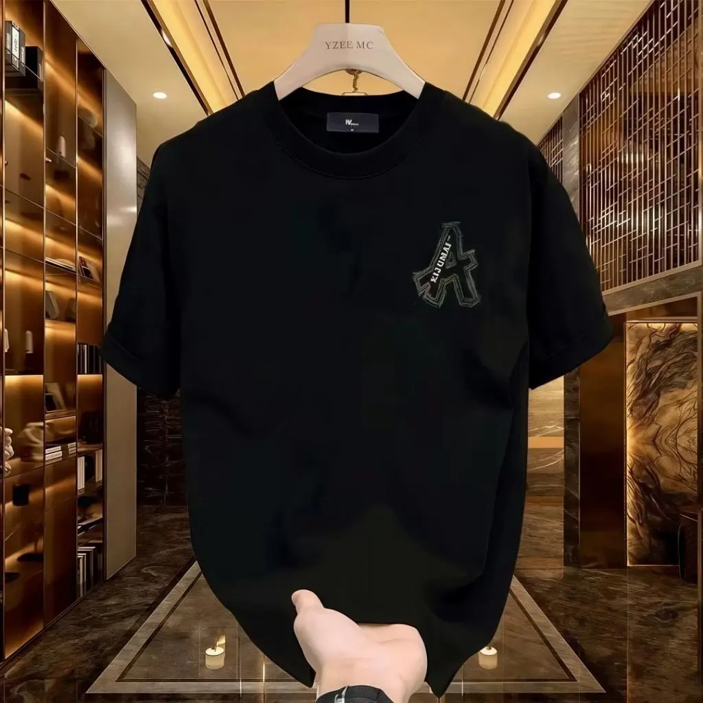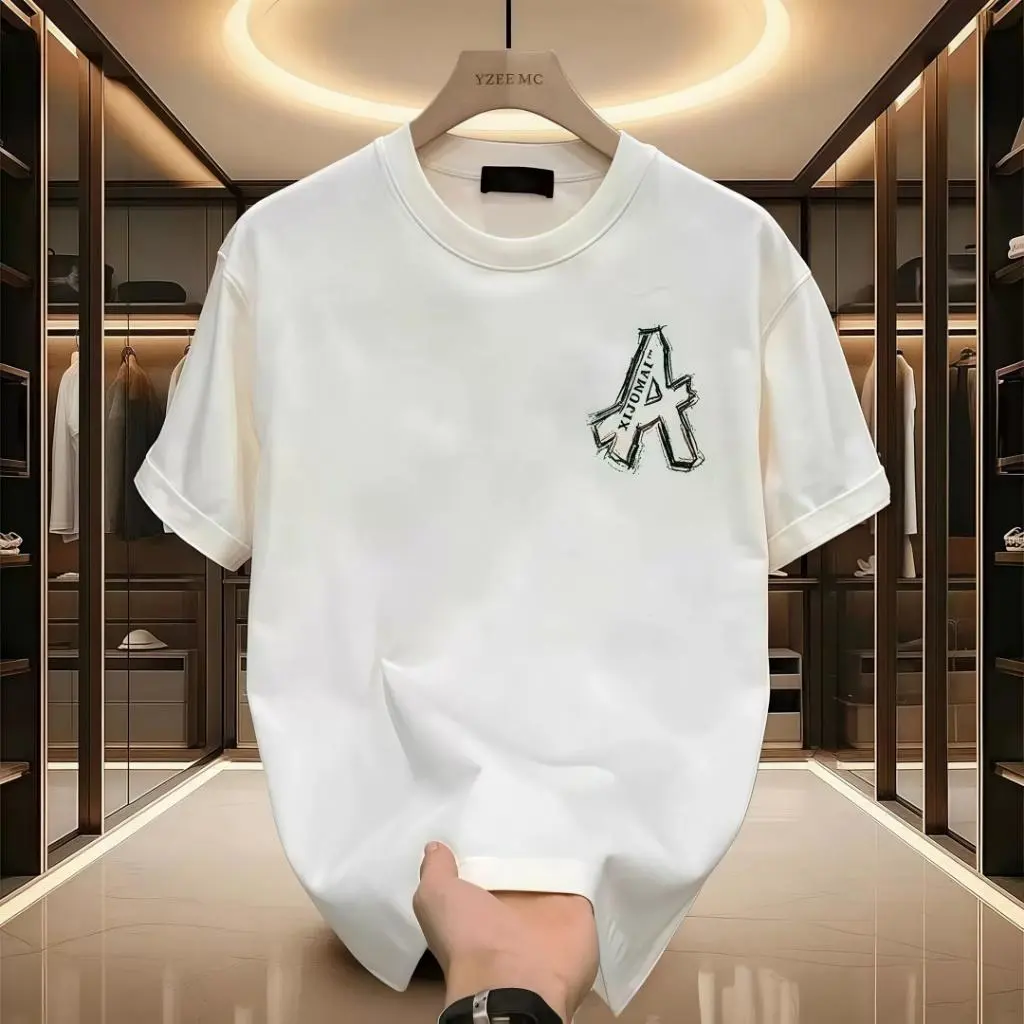 5. COD Kaos pria dengan motif huruf A bergaya Amerika yang trendy, bersifat santai dengan gaya Korea.
