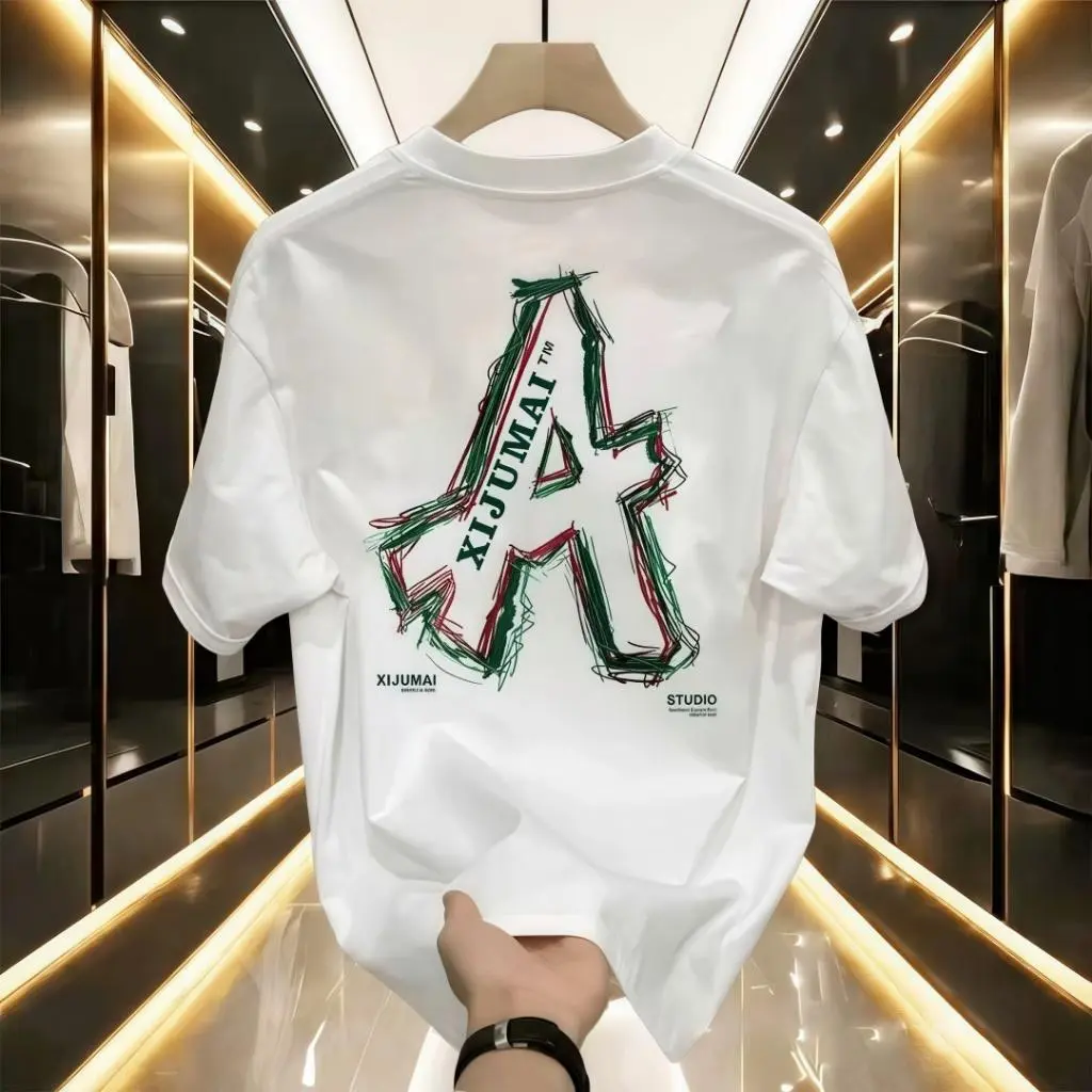 COD Kaos pria dengan motif huruf A bergaya Amerika yang trendy, bersifat santai dengan gaya Korea.