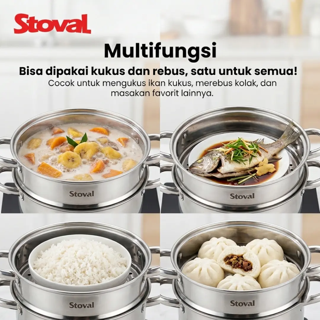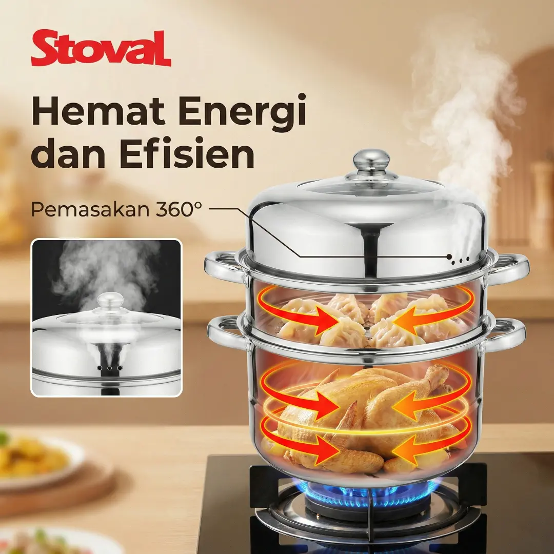 Detail Produk Stoval Steamer 2 Tingkat 3 Susun 24CM Multifungsi & Panas MerataΒ