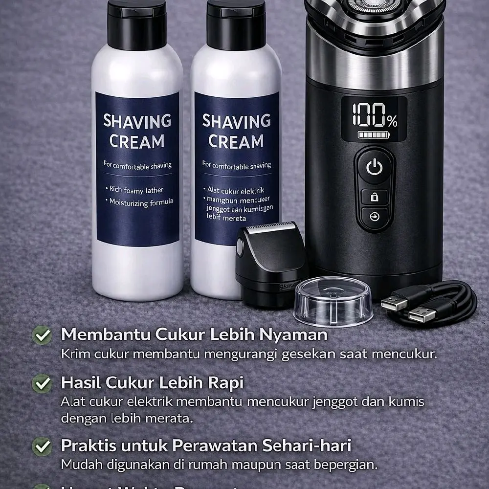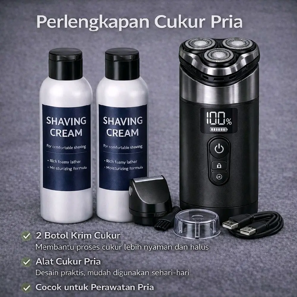 Perlengkapan cukur pria yang dirancang untuk membantu perawatan wajah sehari-hari.