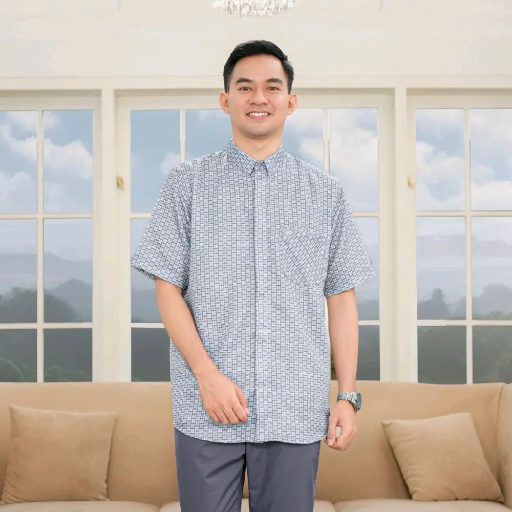 - Kemeja lengan pendek dengan bukaan kancing sembunyi