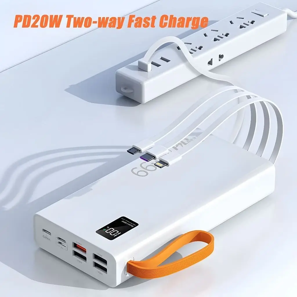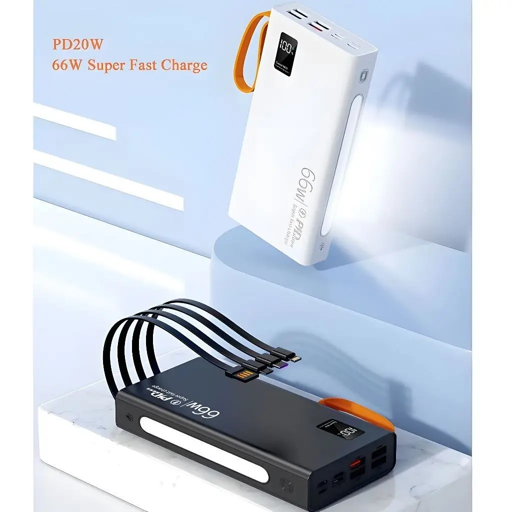 âš¡ PowerBank 60000mAh Fast Charging LCD dengan kabel data Type C dan Micro USB 66W. 100% baru dengan bahan berkualitas tinggi. Pengisian cepat memberikan kecepatan pengisian tercepat. Kapasitas 60000mAh memungkinkan Anda menikmati perangkat Anda dalam waktu lama.