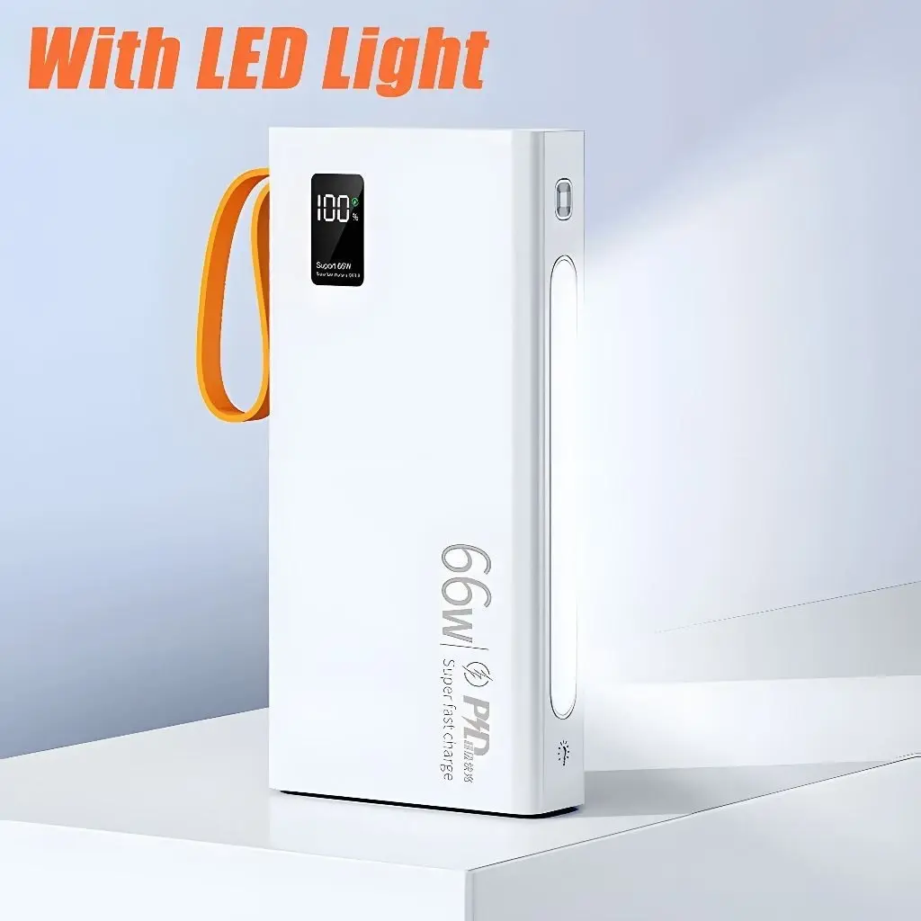Powerbank 60000mAh Fast Charging LED Display dengan Kabel Data Type C & Micro USB 66W Hitam Putih 165*81*31mm