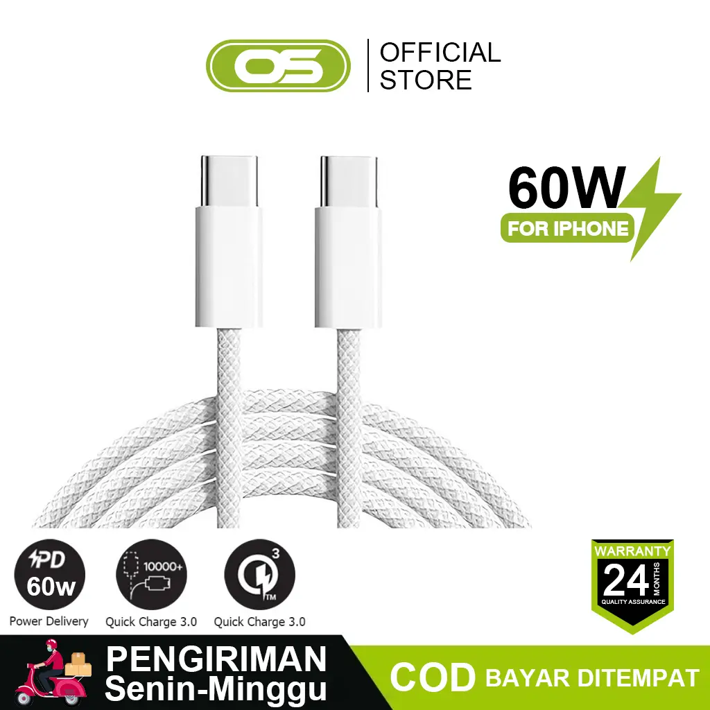 Kabel ini mendukung pengisian daya hingga 60W dan transfer data pada kecepatan USB 2.