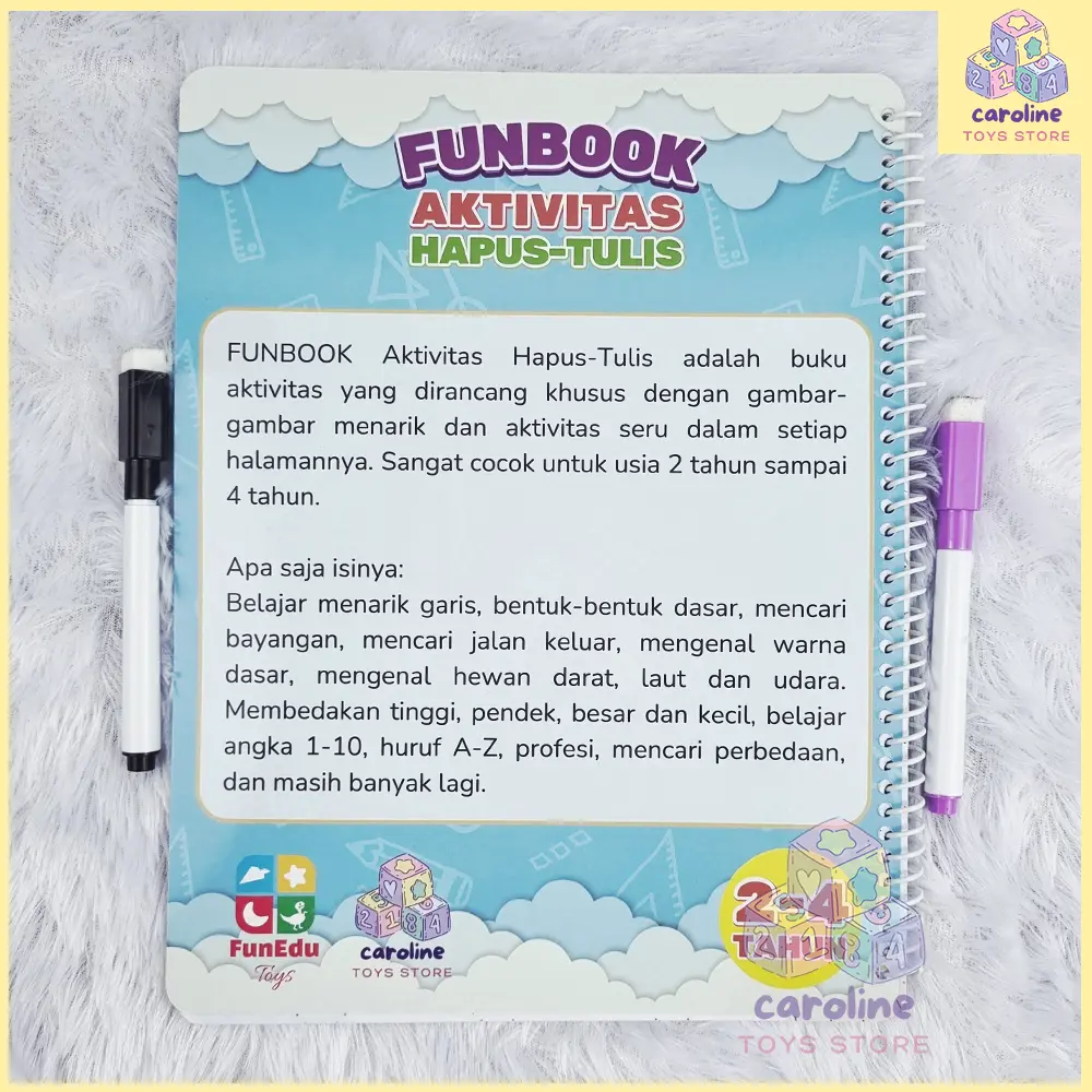 Buku Aktivitas FUNBOOK Aktivitas Hapus Tulis Paud Pra TK 2 3 4 Tahun Gratis Spidol