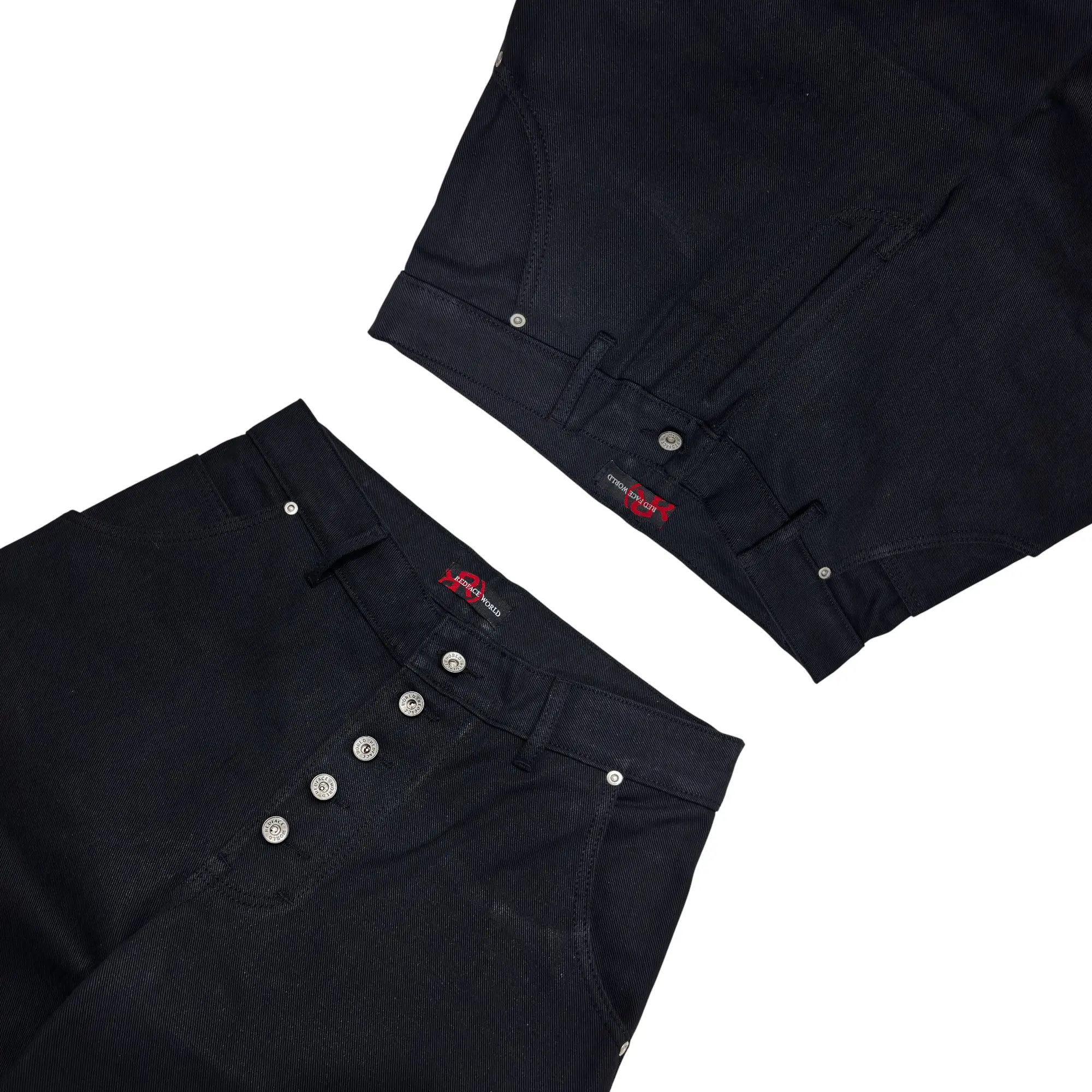 Ankoku Series dibuat dari raw denim black on black 14oz sanforized dengan struktur tebal dan siluet tegas. Fokus pada fungsi dan bentuk, dirancang untuk pemakaian harian dengan karakter raw denim yang tegas.